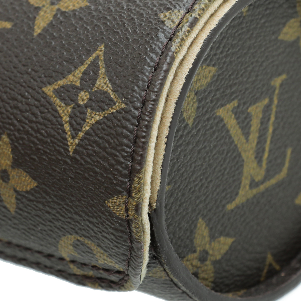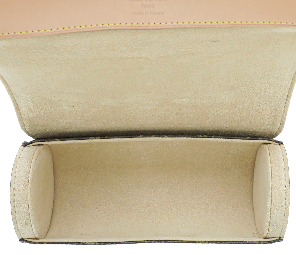 - المادة : قماش مغلف مونوجرام بني بني مع تقليم جلد البقر الطبيعي