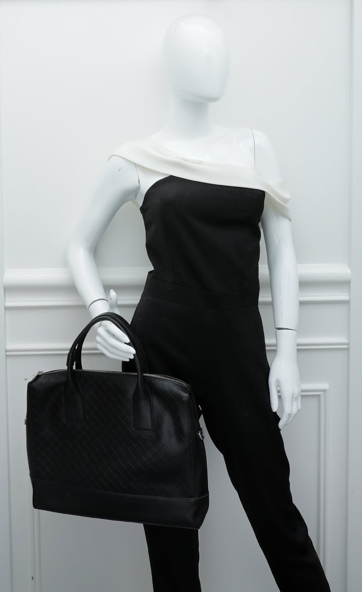 Bottega Veneta Black intrecciato مقبض مقبض أعلى