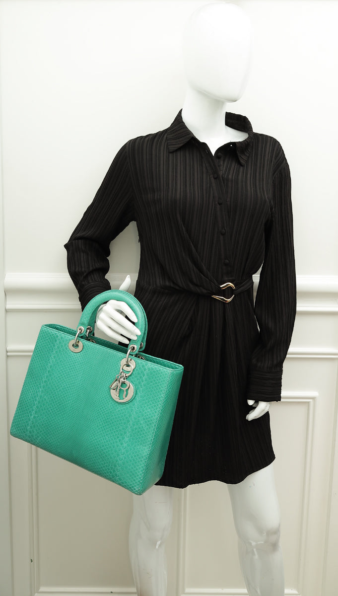 Christian Dior Green Snakeskin Lady Dior Large Bag