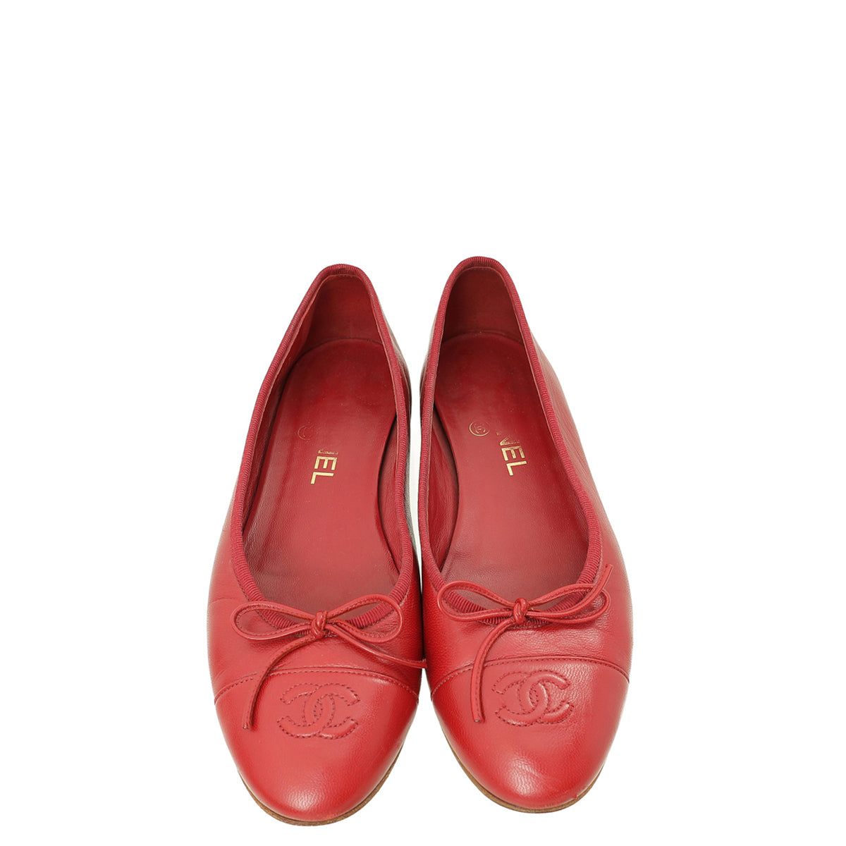 Material: Red Lambskin Leather with Bow Details and Stitched CC Logo