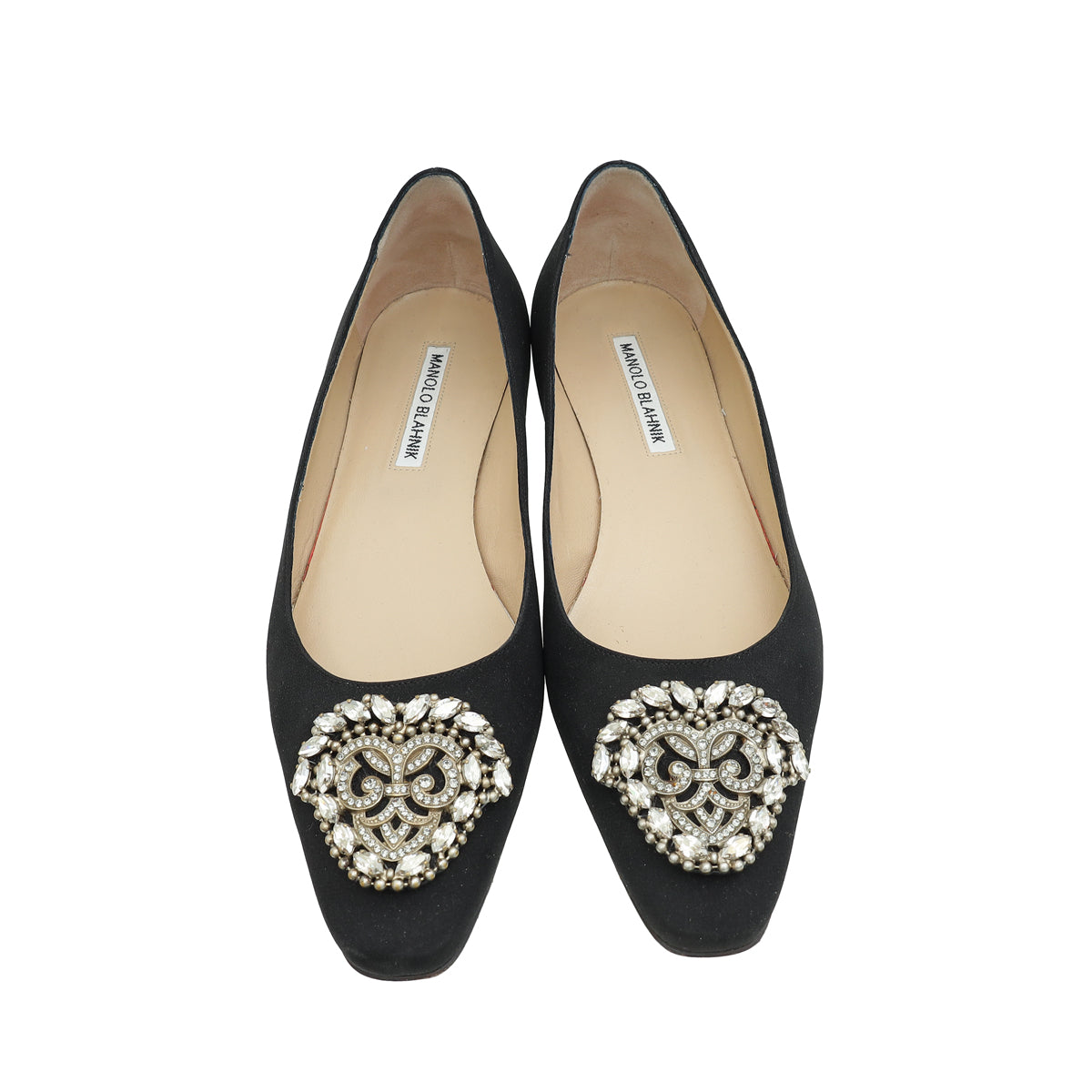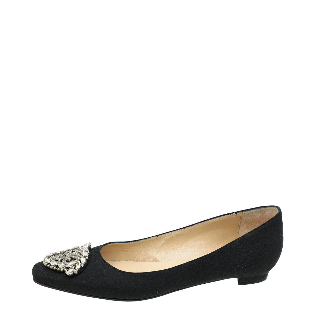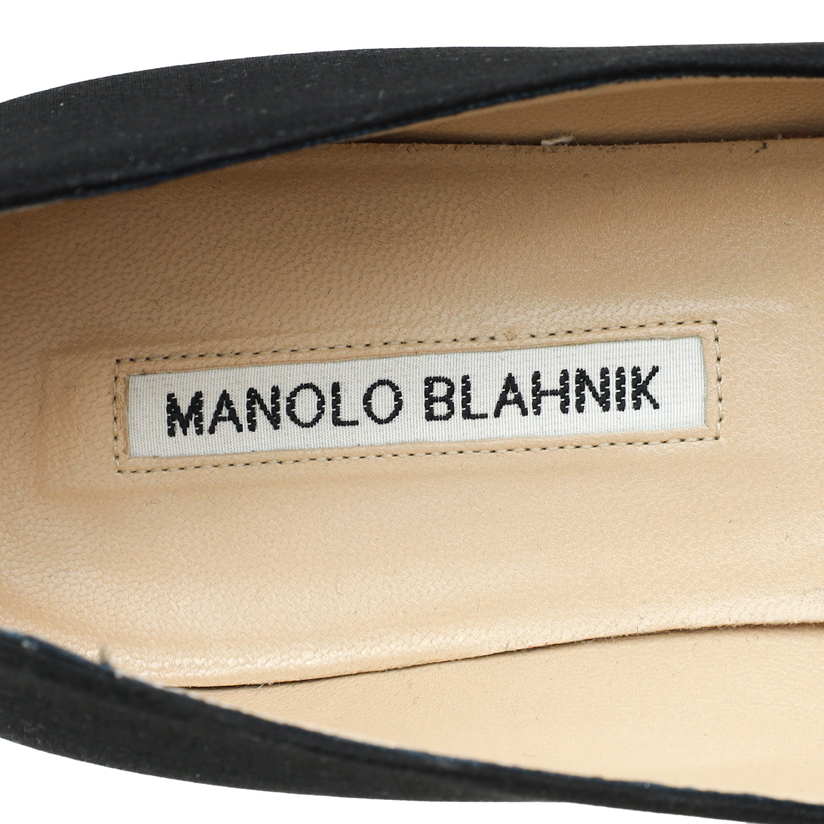 Manolo Blahnik Black Satin Okkava Flat Ballet 38.5