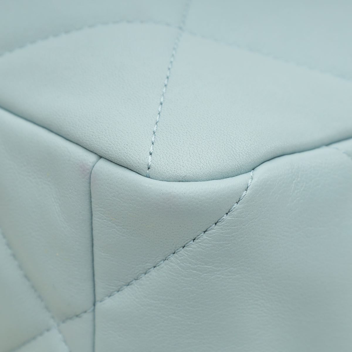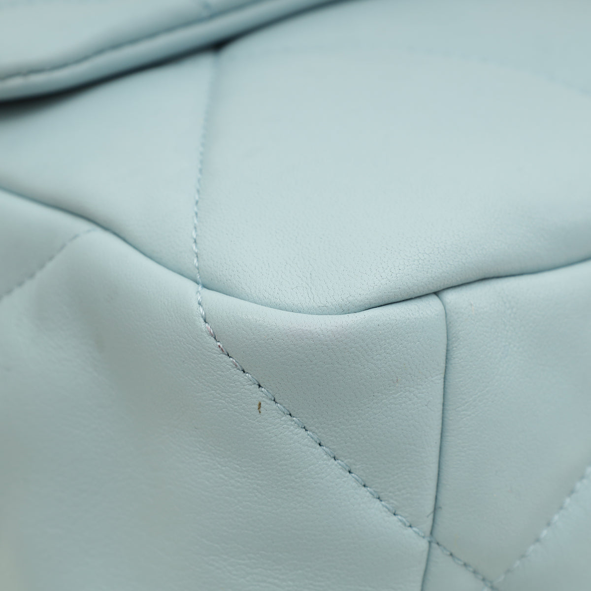 - Material: Light Blue Quilted Goatskin Leather