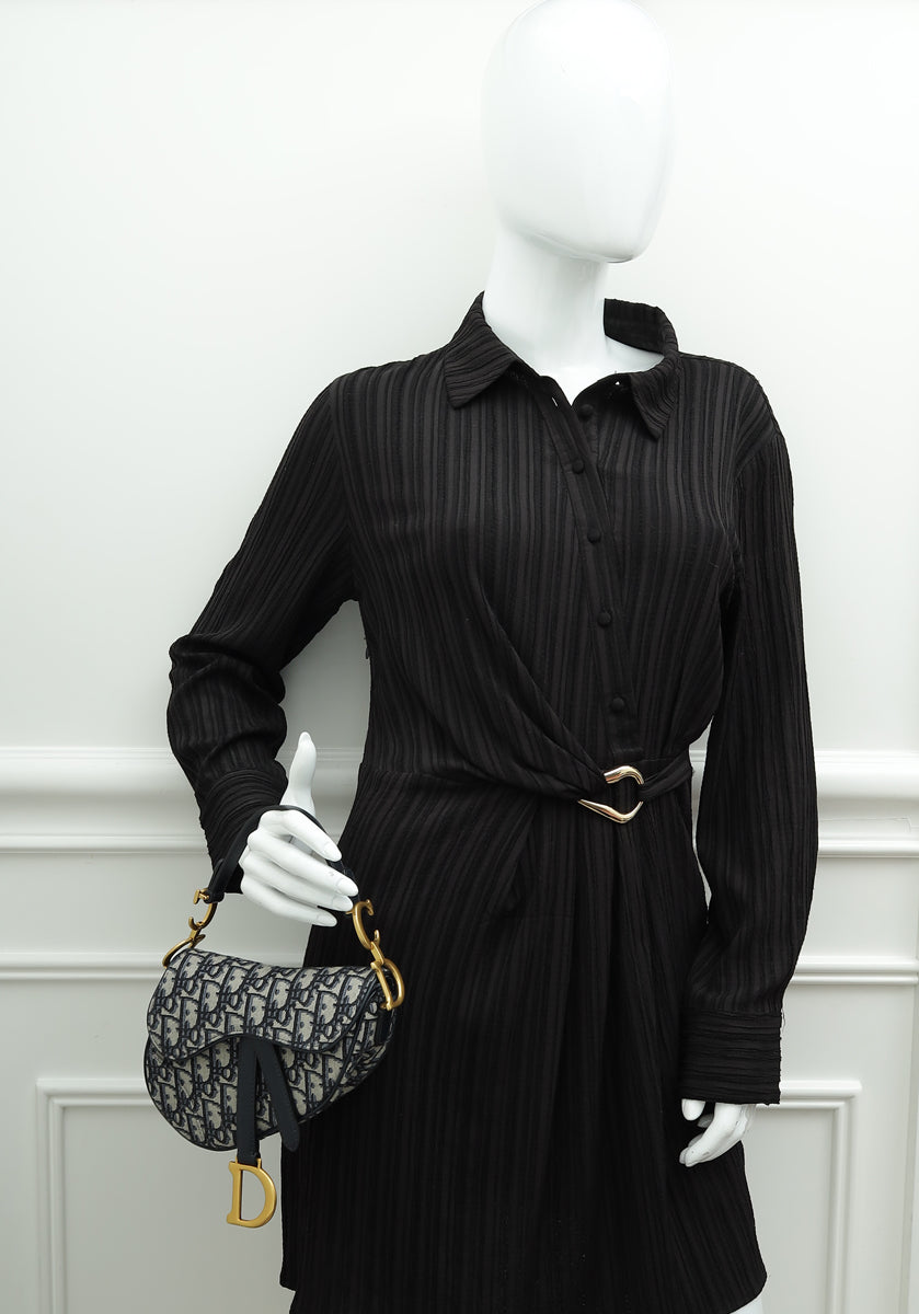 Christian Dior Navy Blue Oblique Saddle Mini Bag