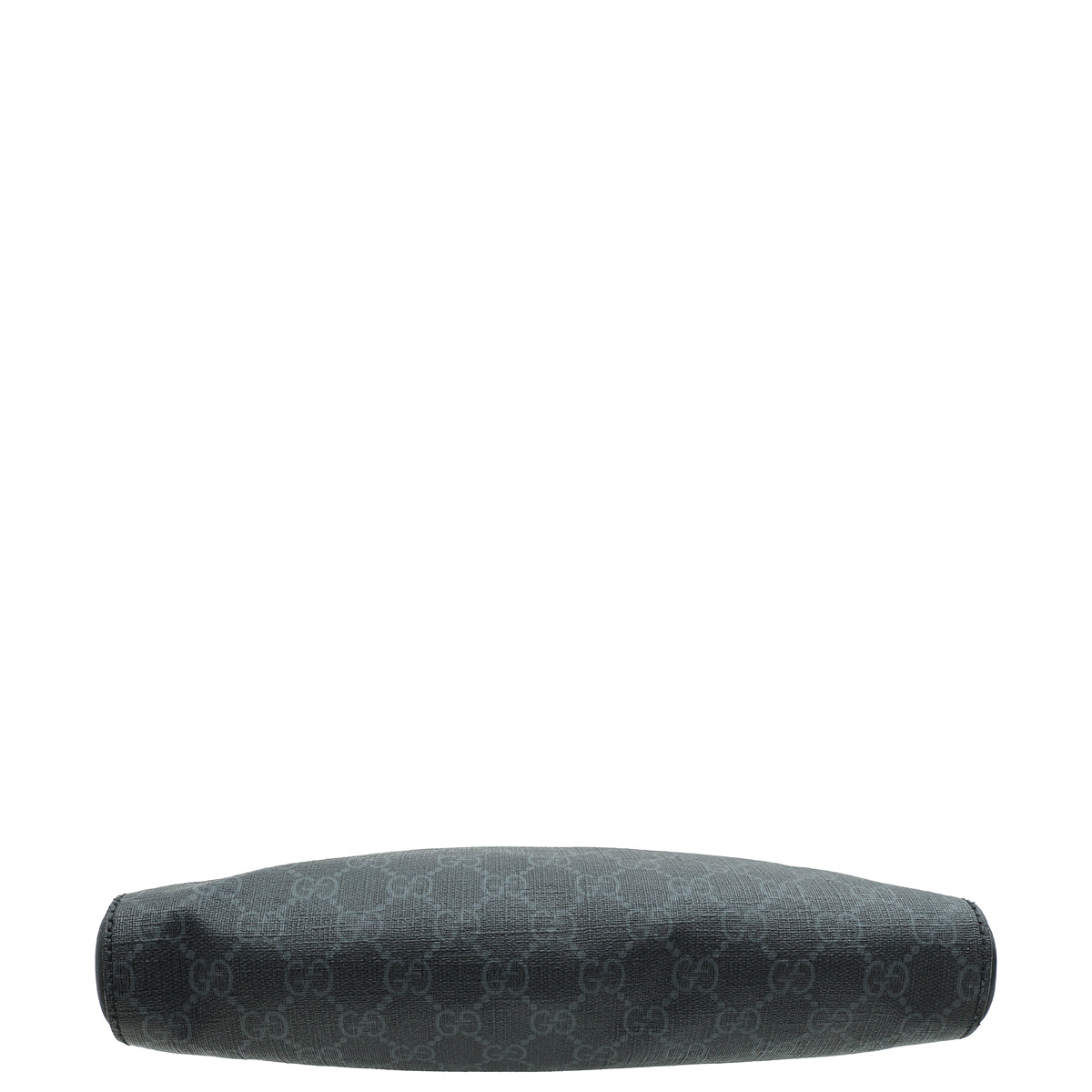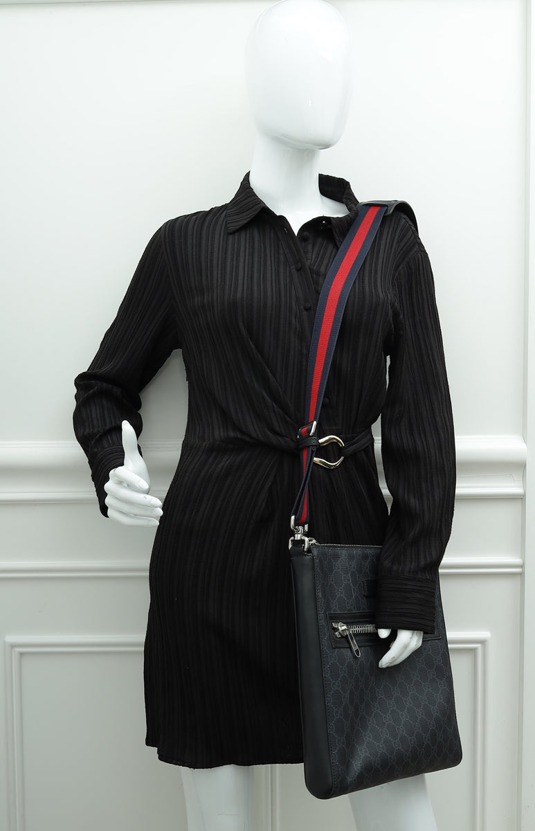 Material: Black/Grey GG Coated Canvas with Black Leather Trim and Navy/Red Web Strap