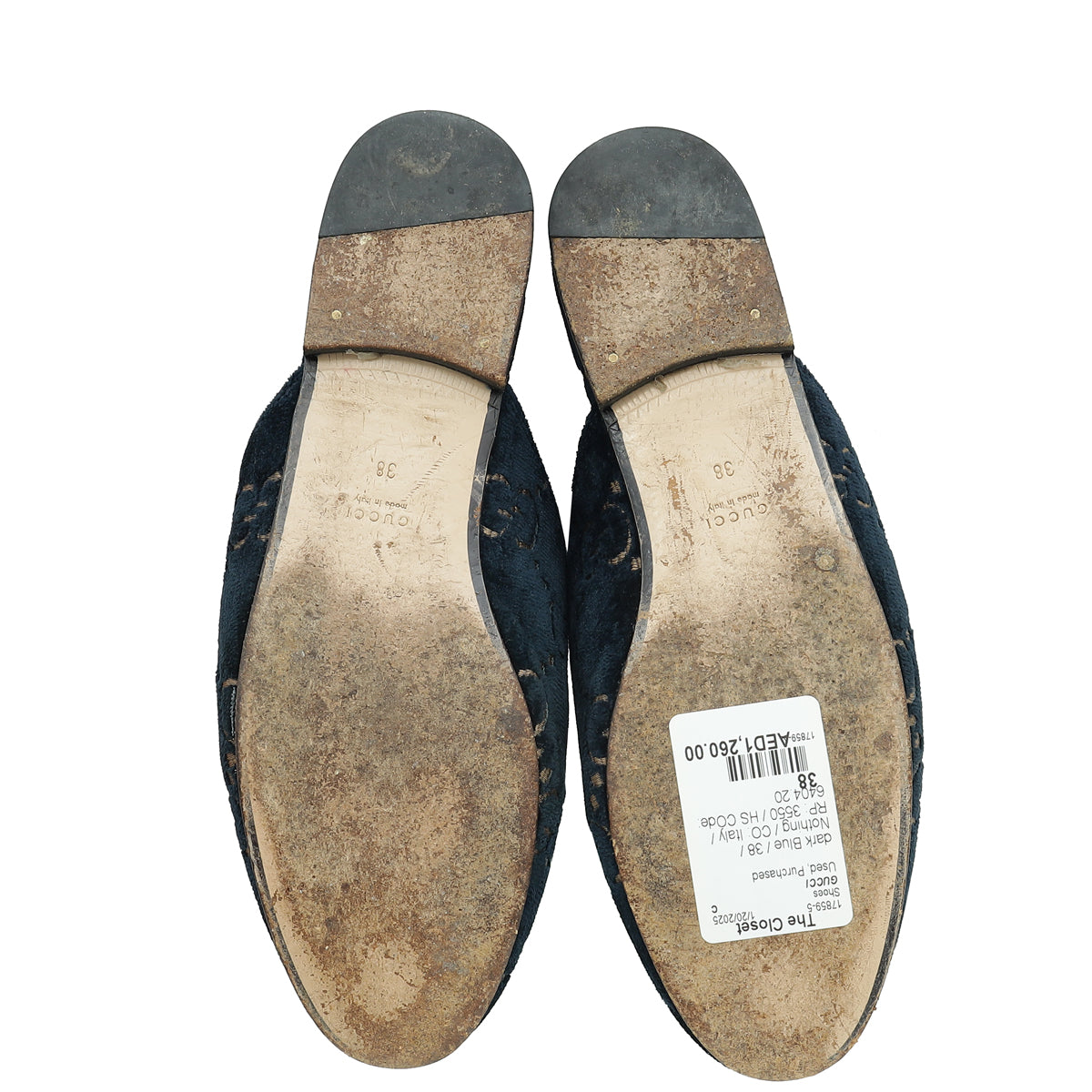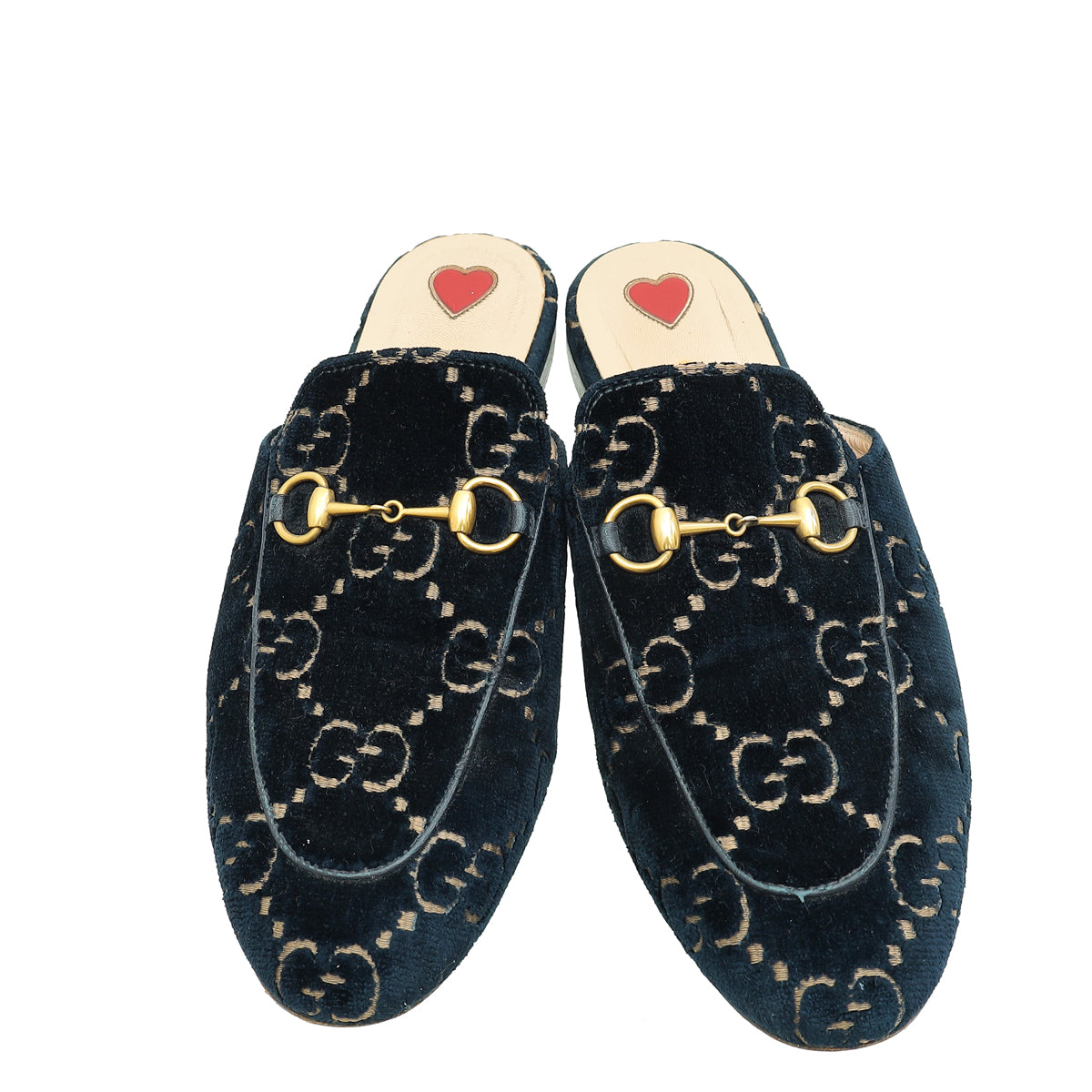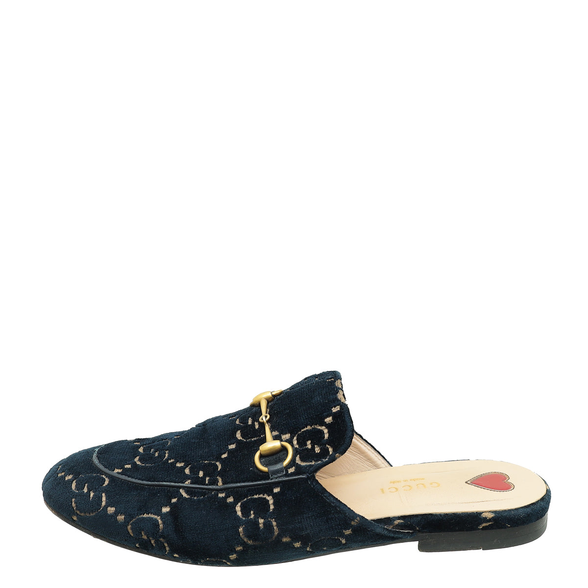 Gucci Dark Blue Princetown Embroidered Velvet Mules 38