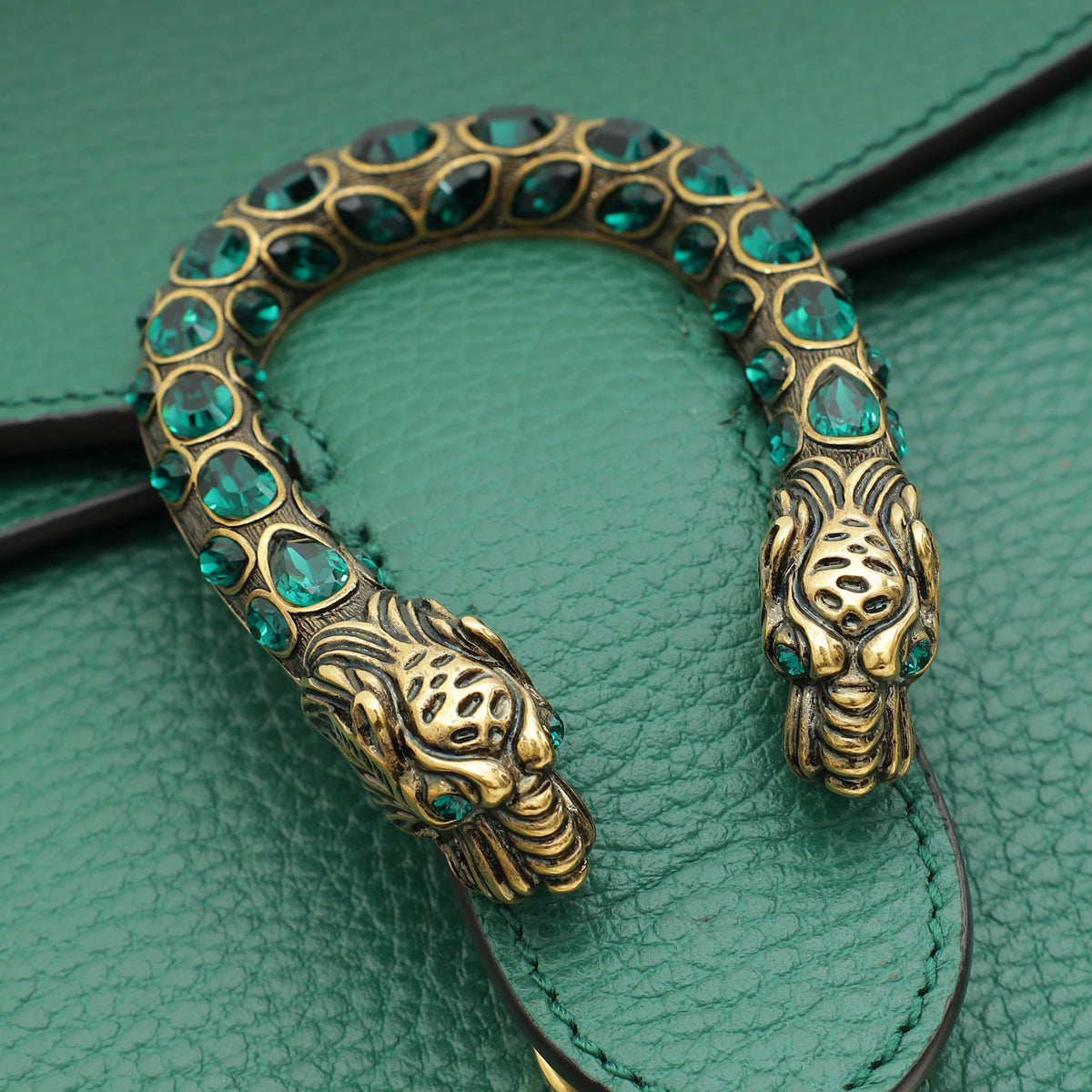 Material: Green Leather and Tiger Heads Closure with Crystals