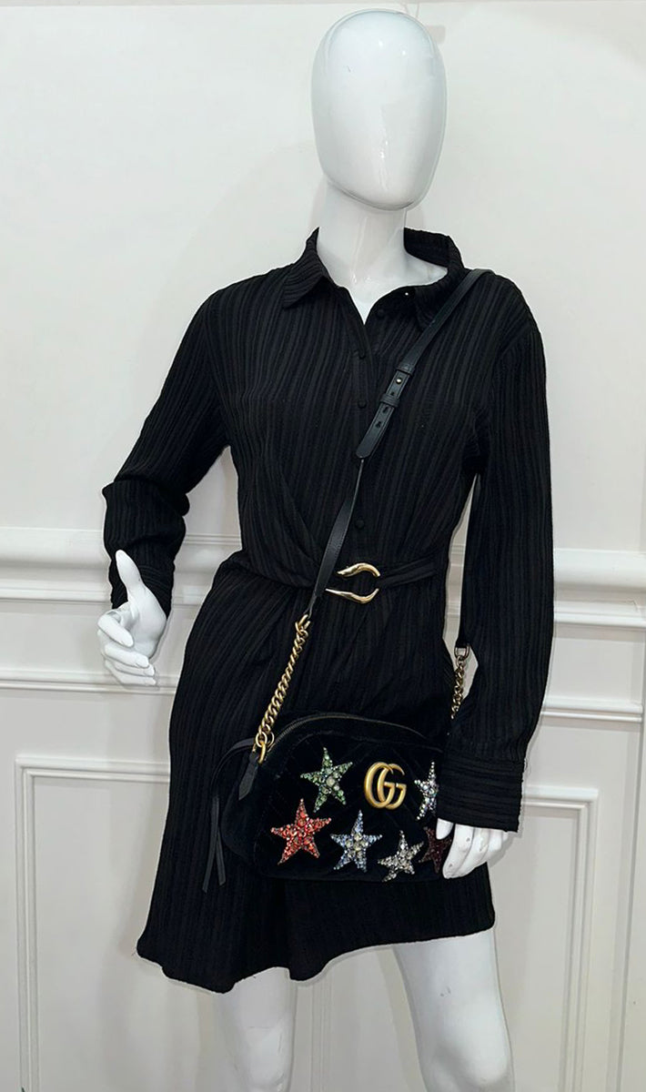 حقيبة غوتشي سوداء مخملية جي جي مارمونت كريستال ستار صغيرة