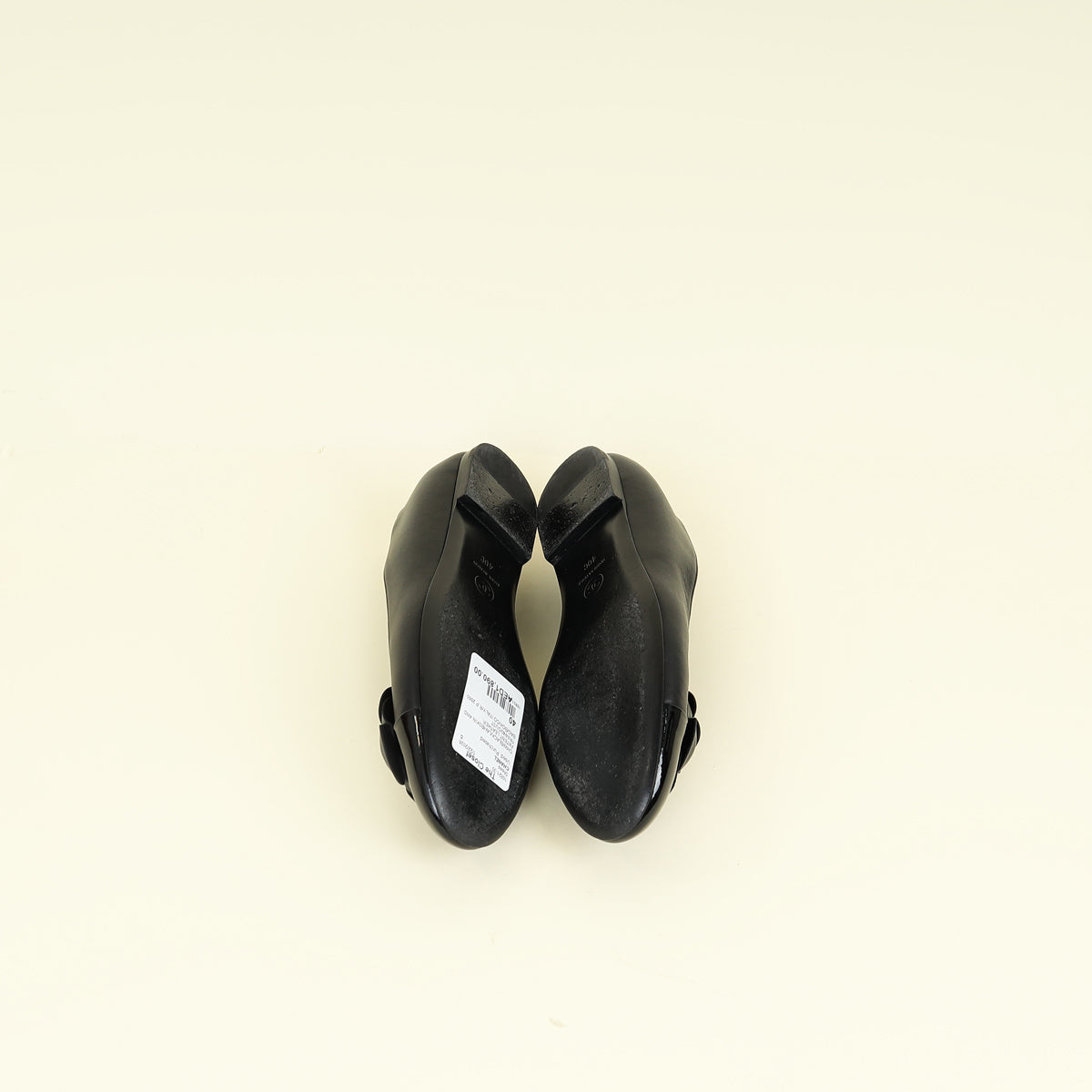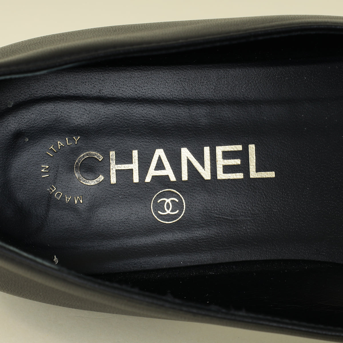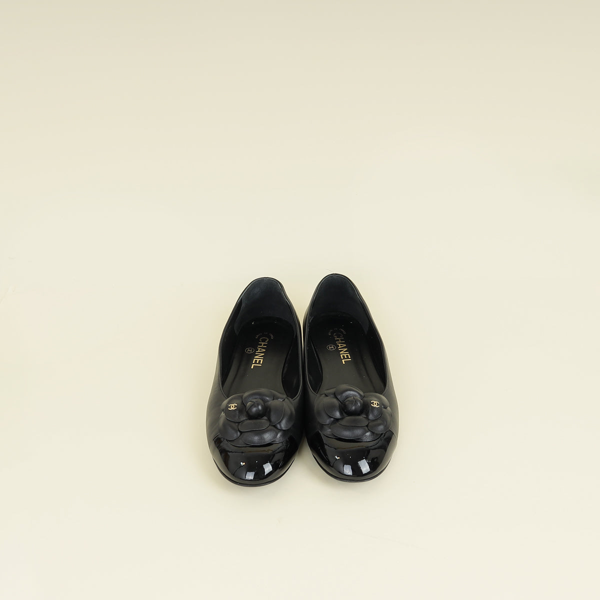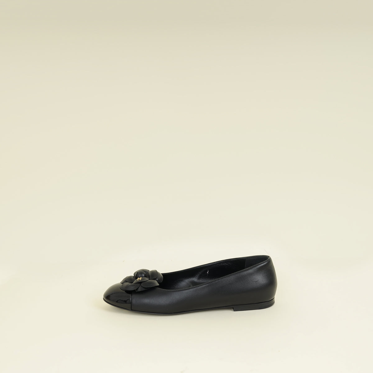 Chanel Black CC Cap Toe Camellia Flower Flat Ballerina 40