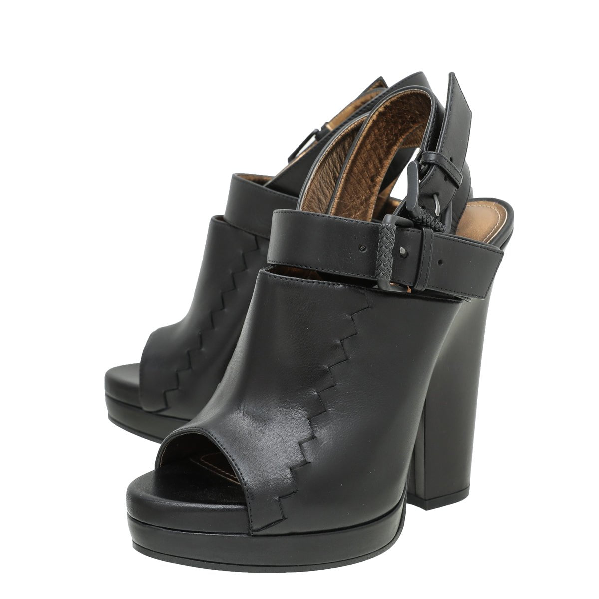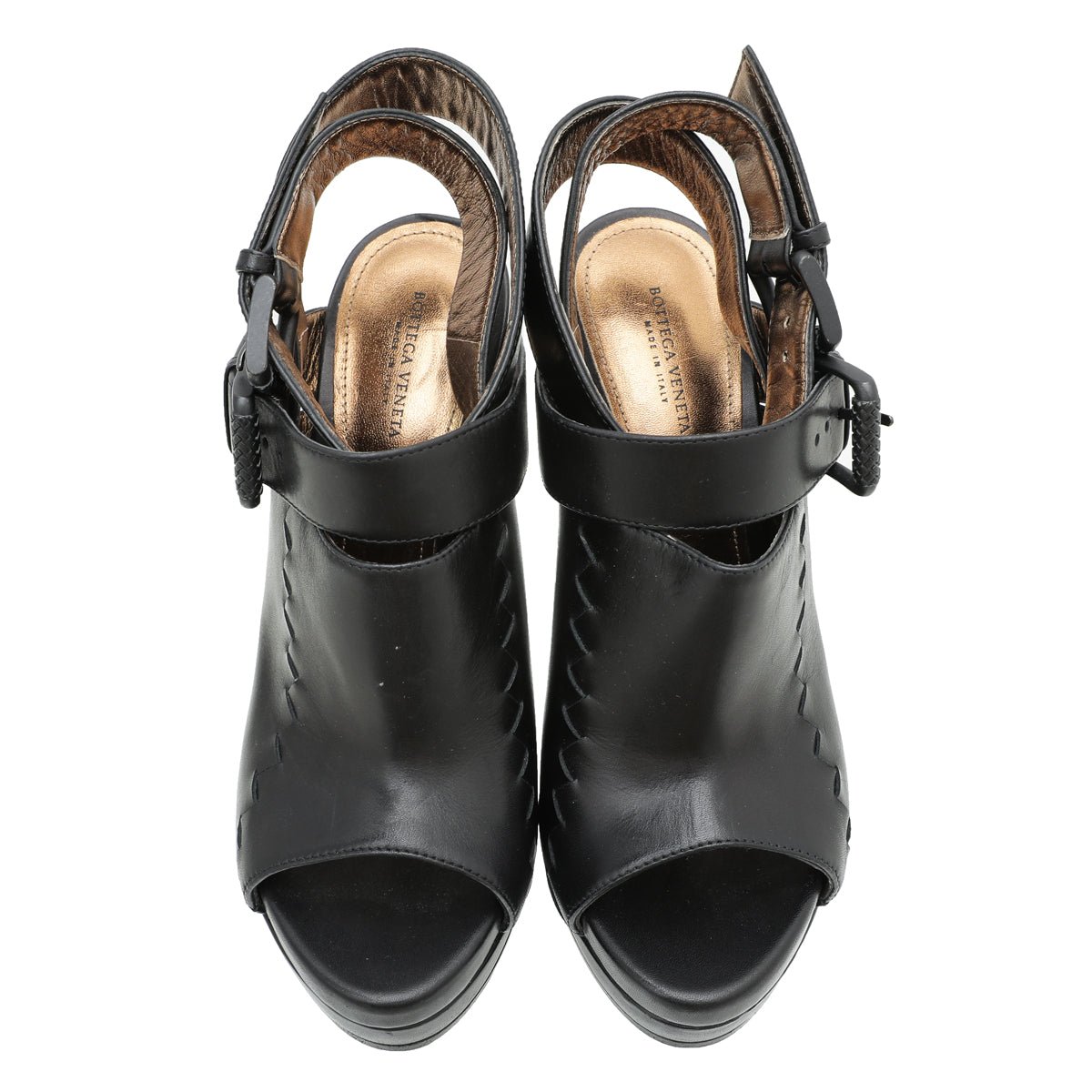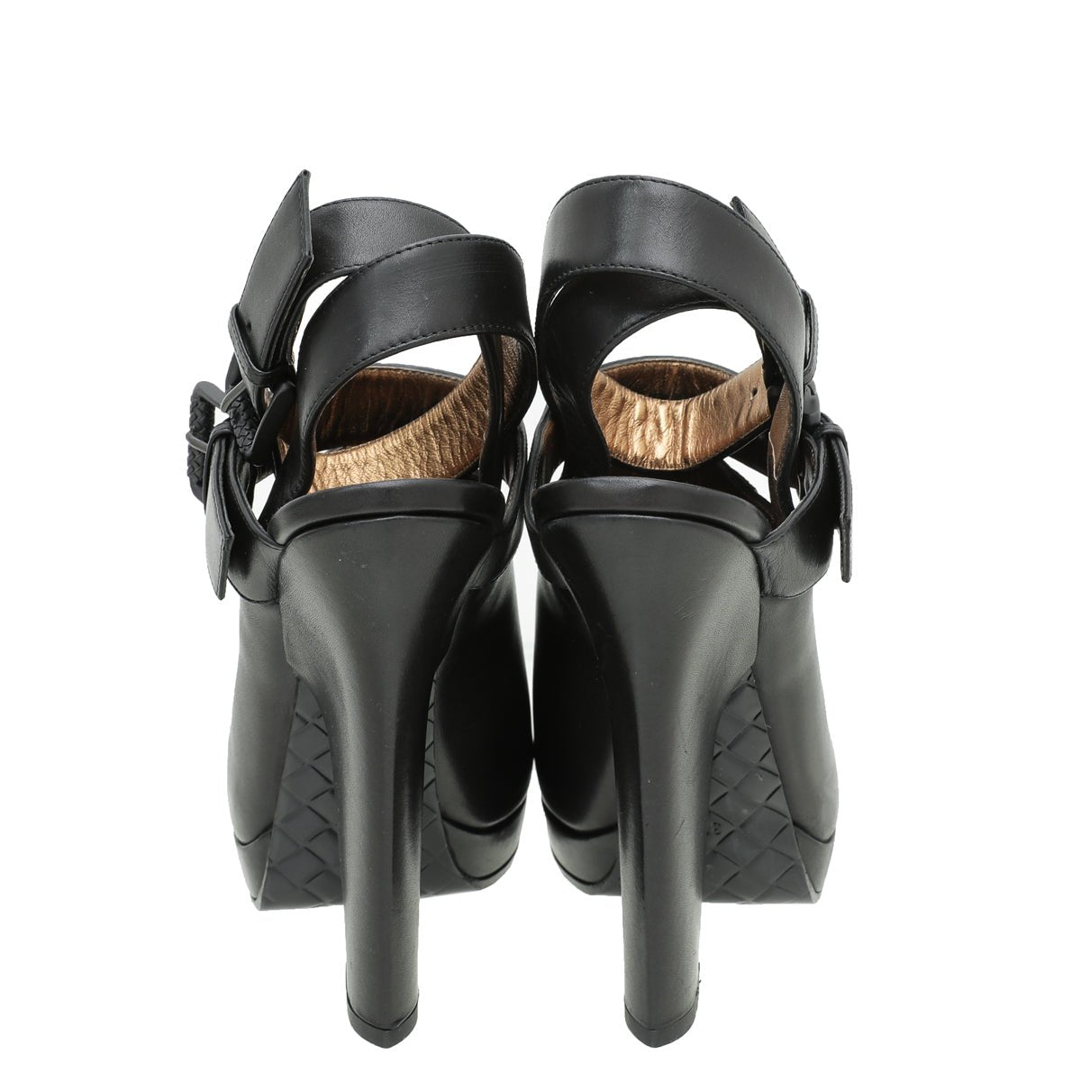 Bottega Veneta Black Peep Toe Toe Wrap Platfort Sandals 38