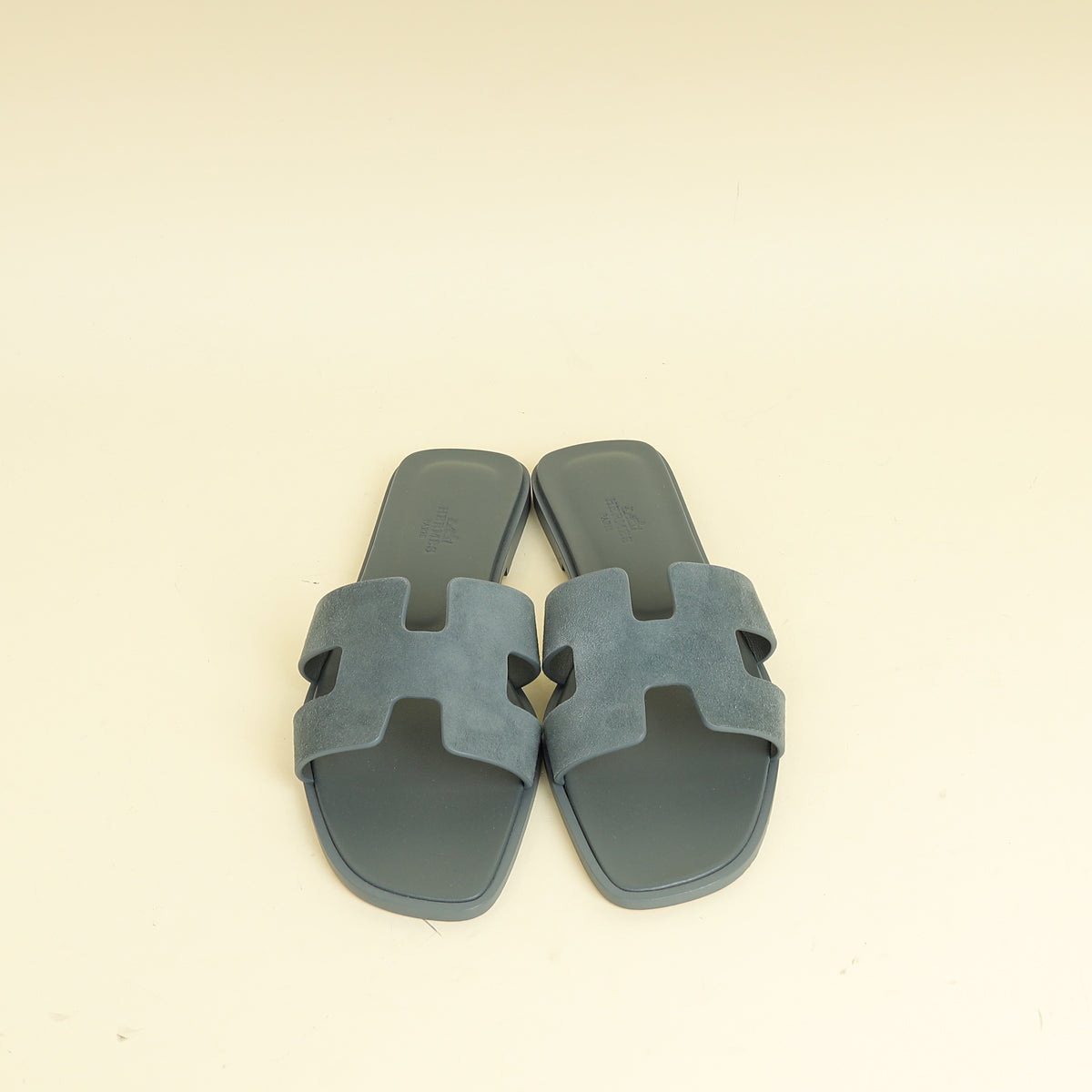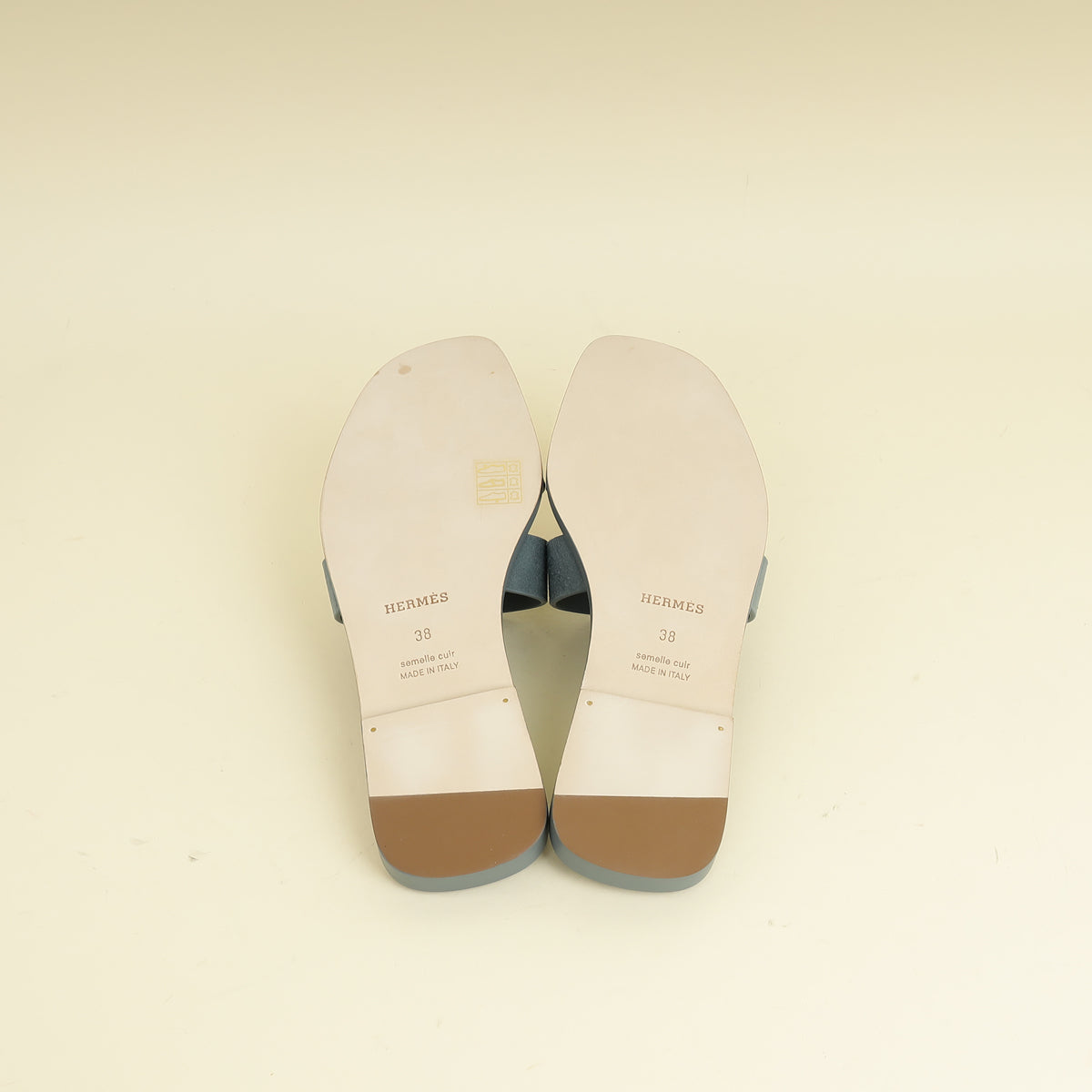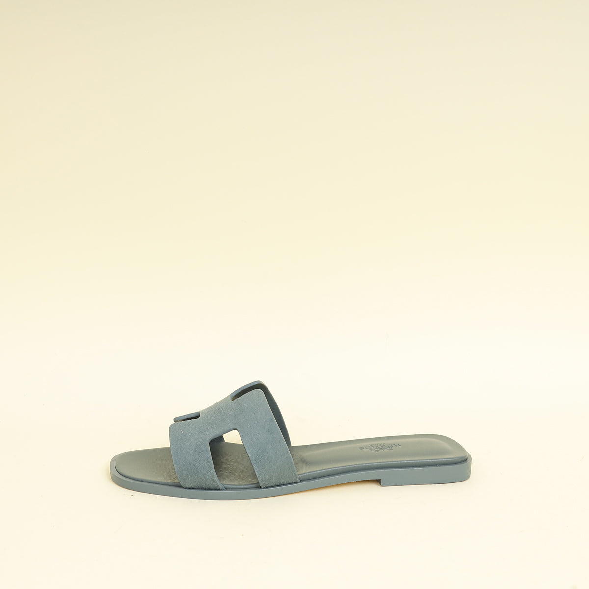 Hermes Gris Antarctique Suede Goatskin Oran Sandal 38