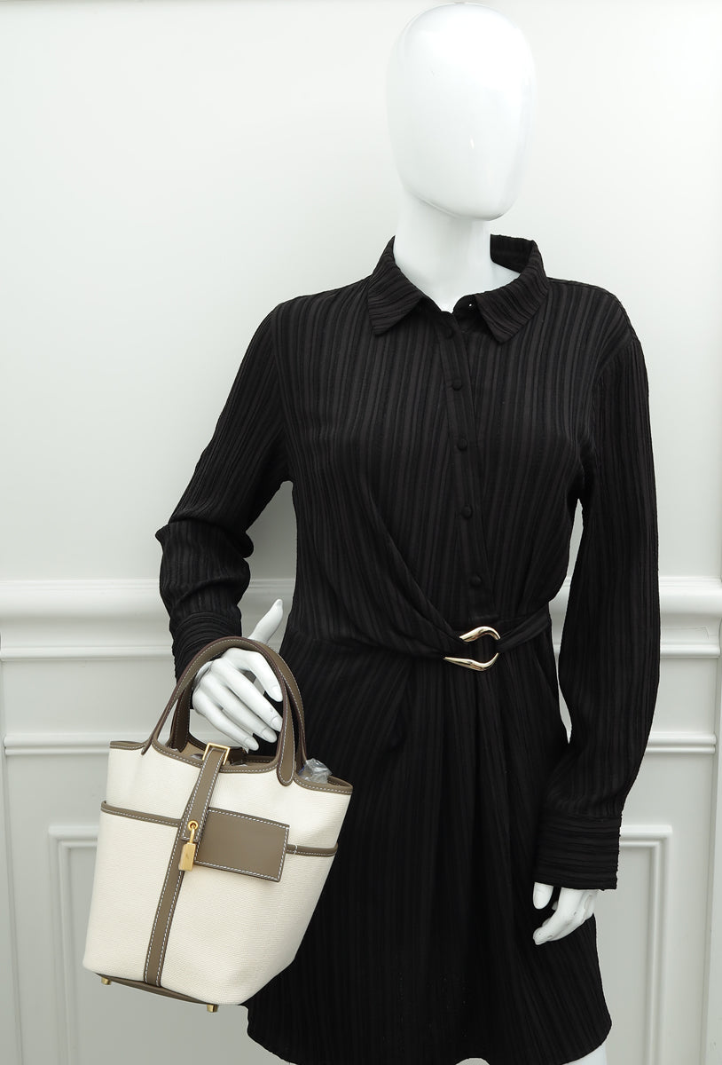 Hermes Bicolor Cargo Picotin Lock 18 Toile Goeland Swift Bag