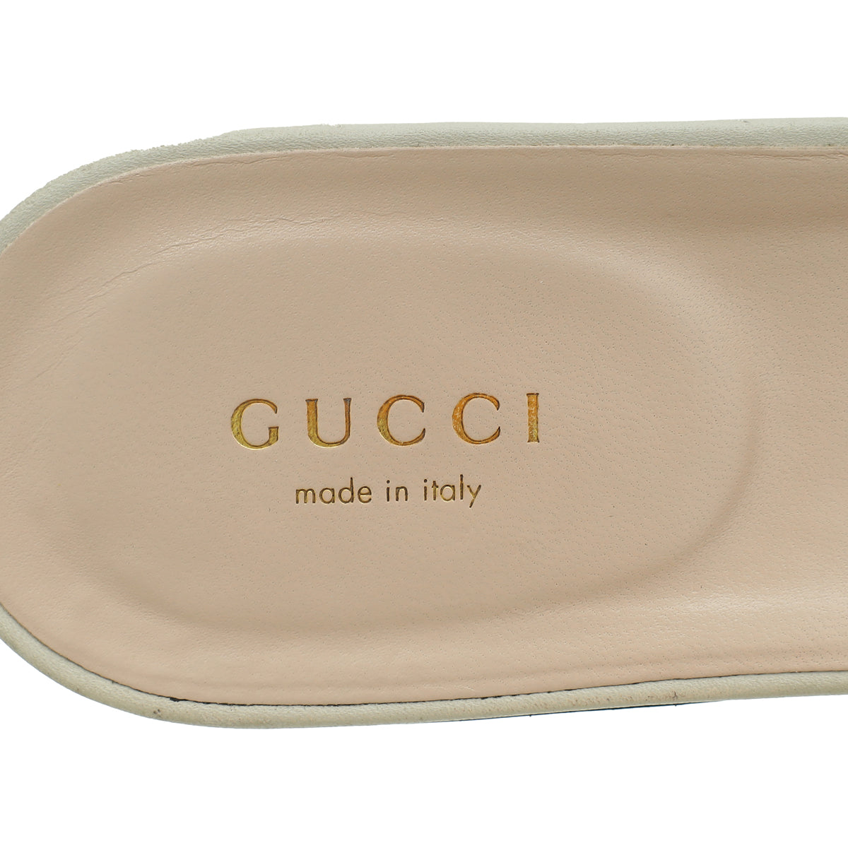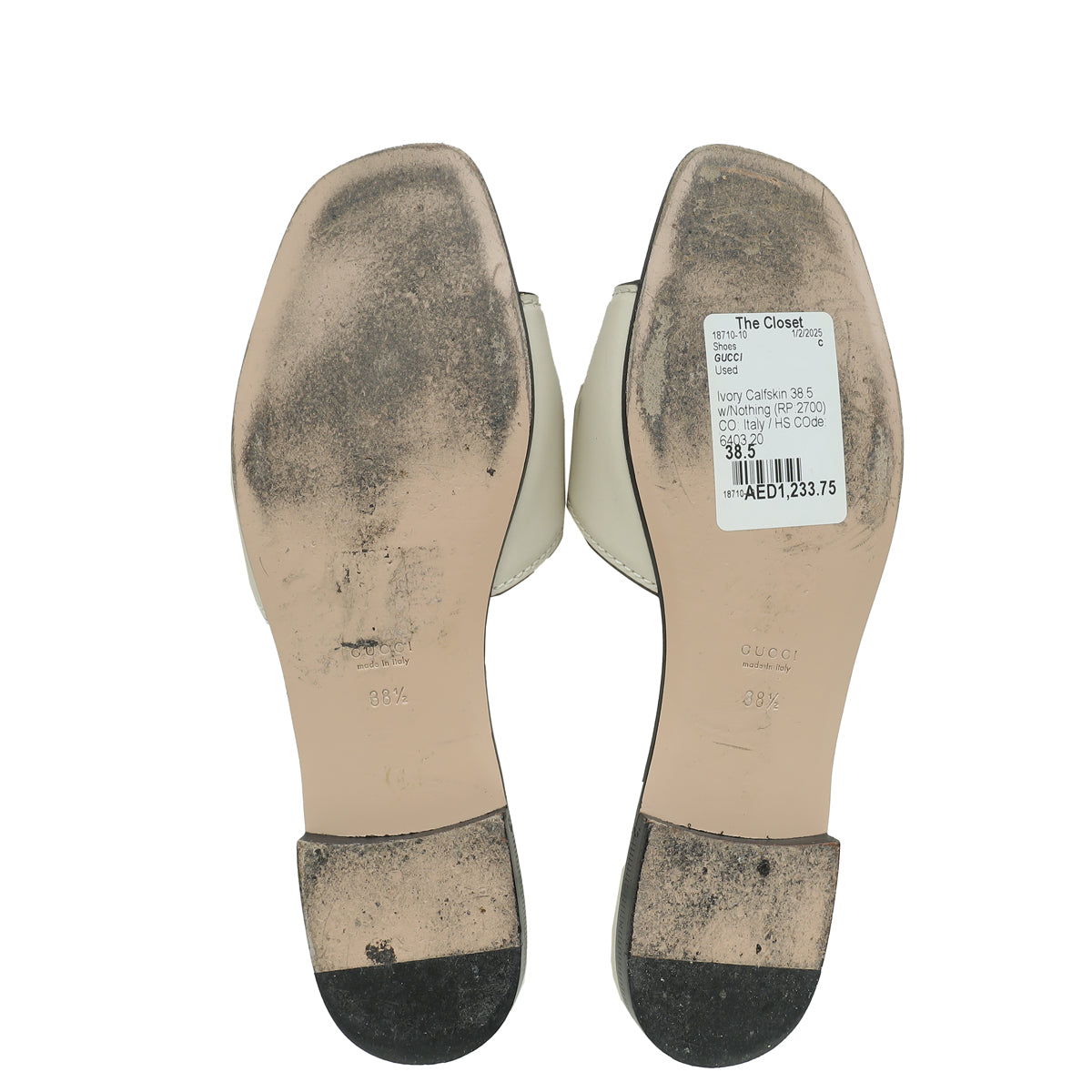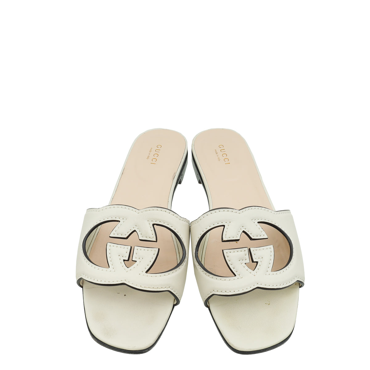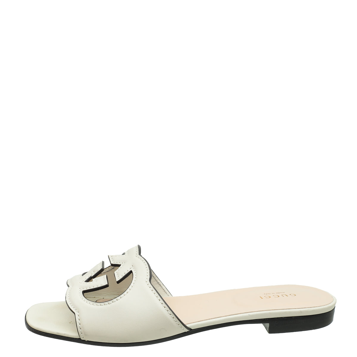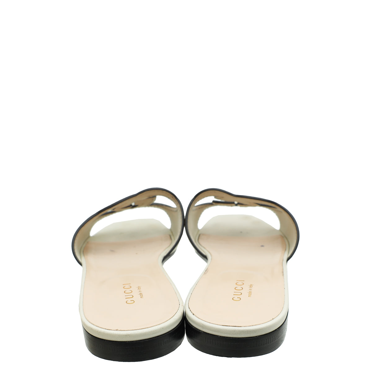 Gucci Ivory GG Cut Out Flat Slide Sandal 38.5
