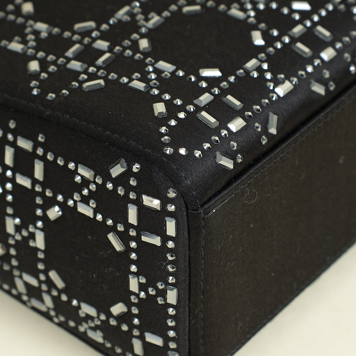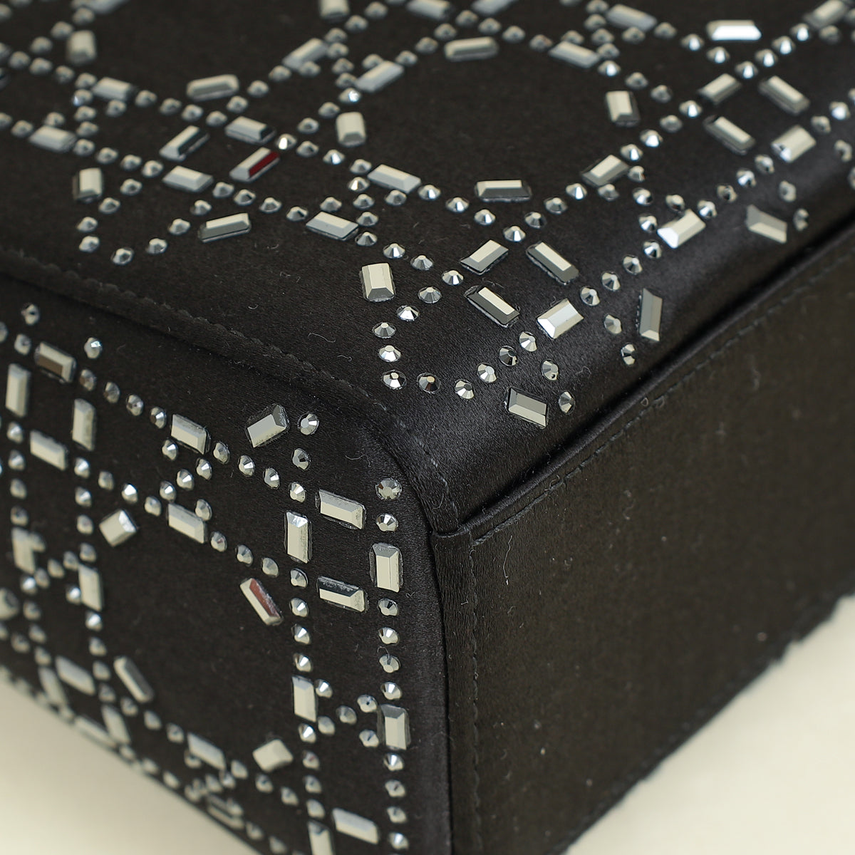 Christian Dior Black Satin Strass Cannage Mini Lady Dior Bag