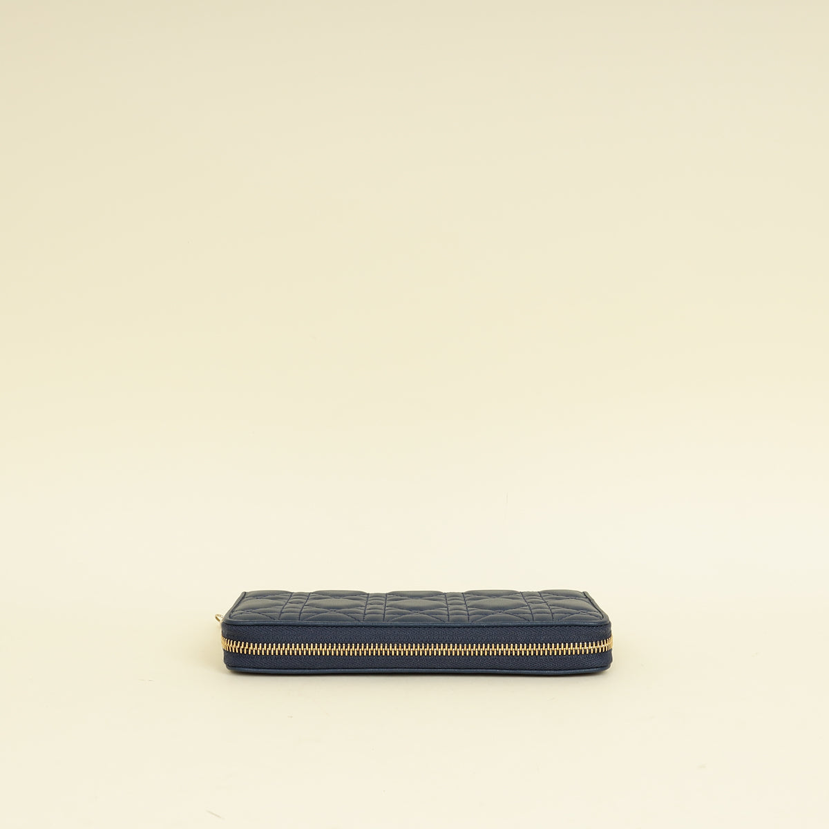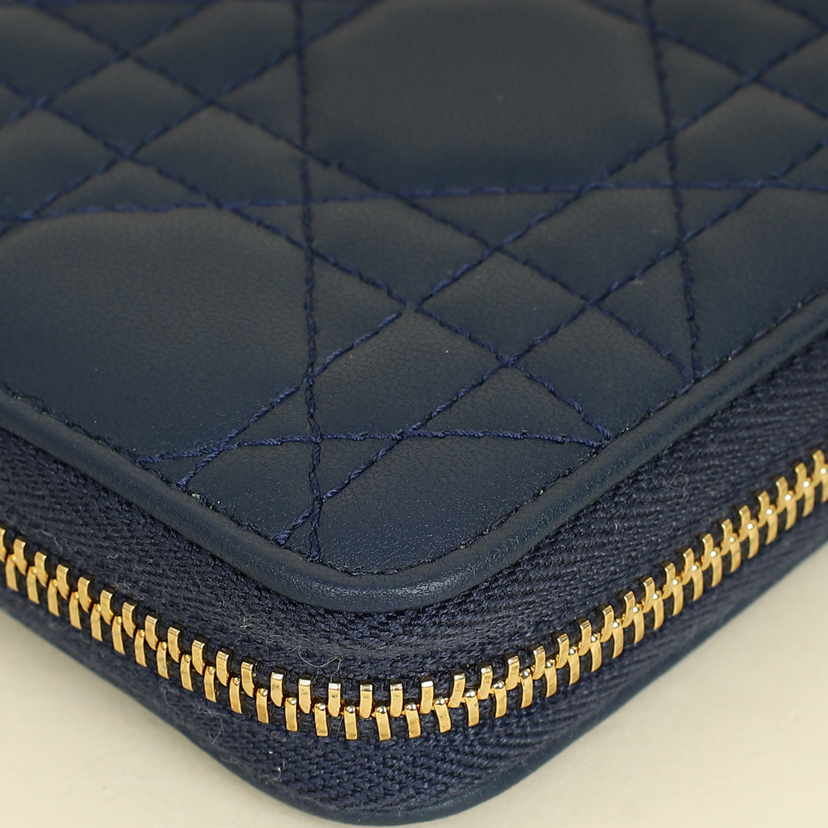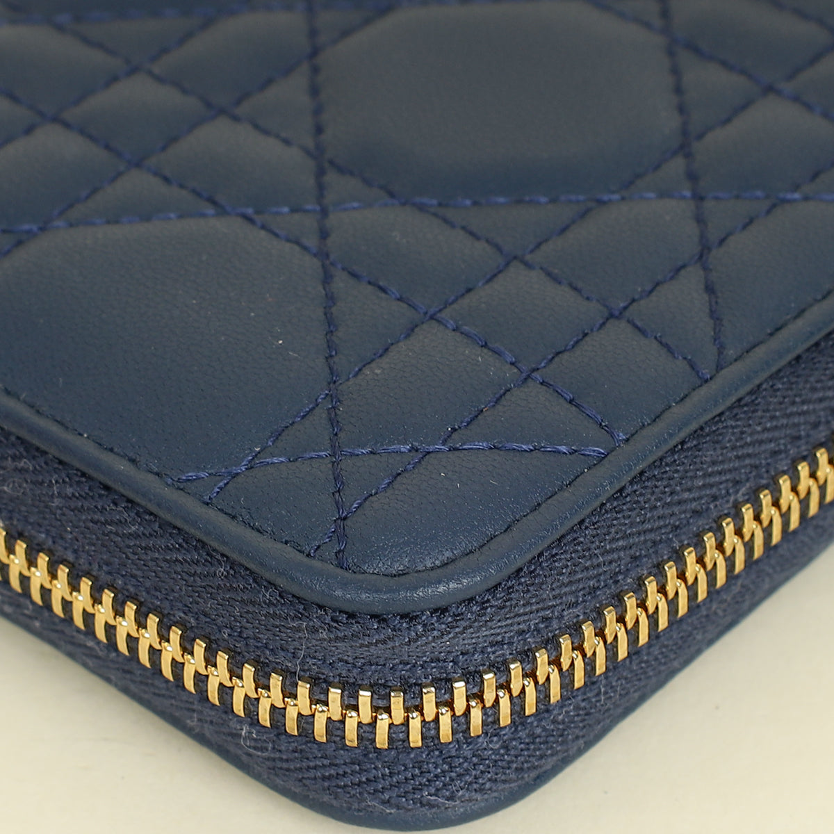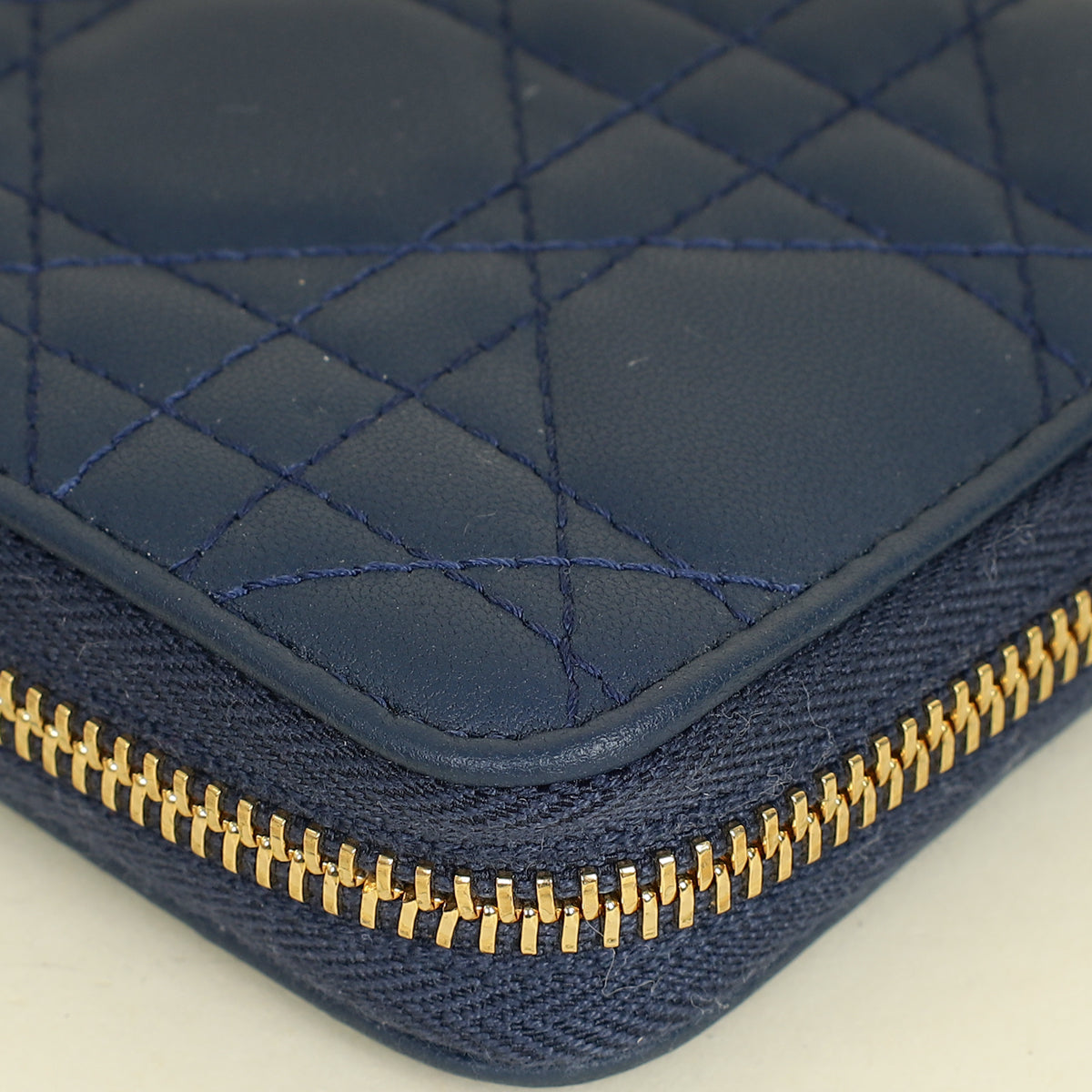 Christian Dior Blue Lady Dior Cannage Voyageur Wallet