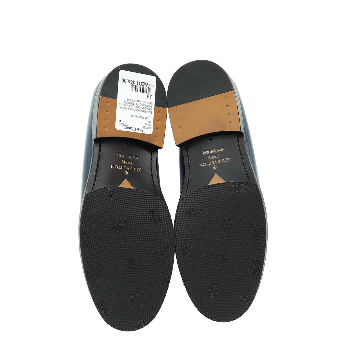 - Material: Blue Glazed Calfskin and Brown Monogram Coated Canvas Trim