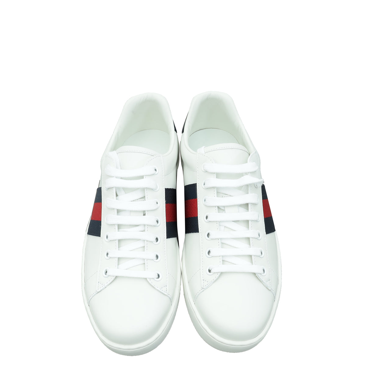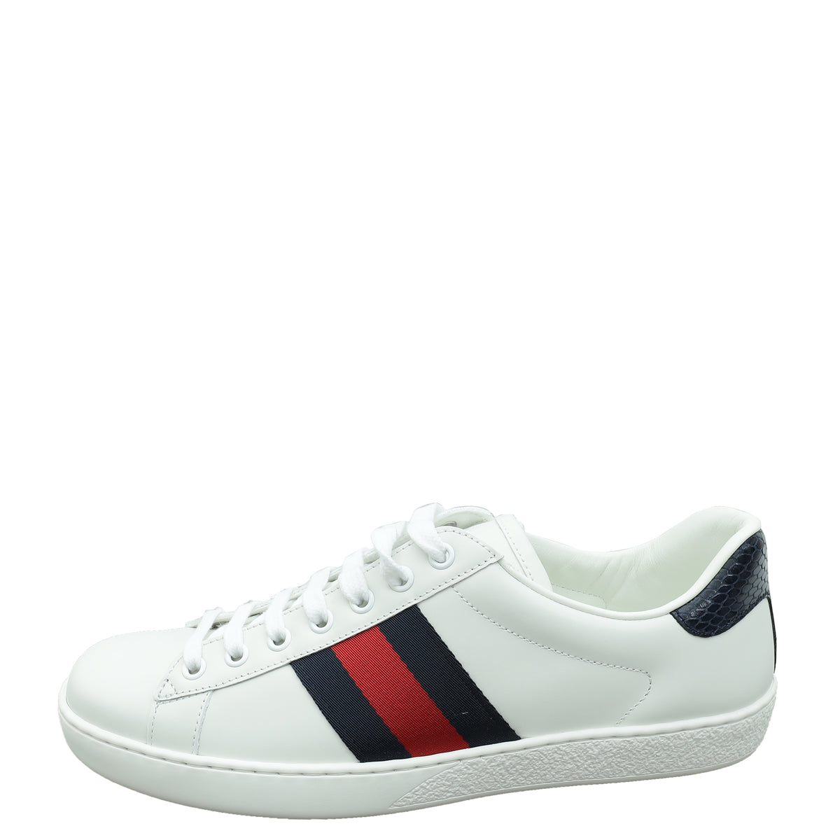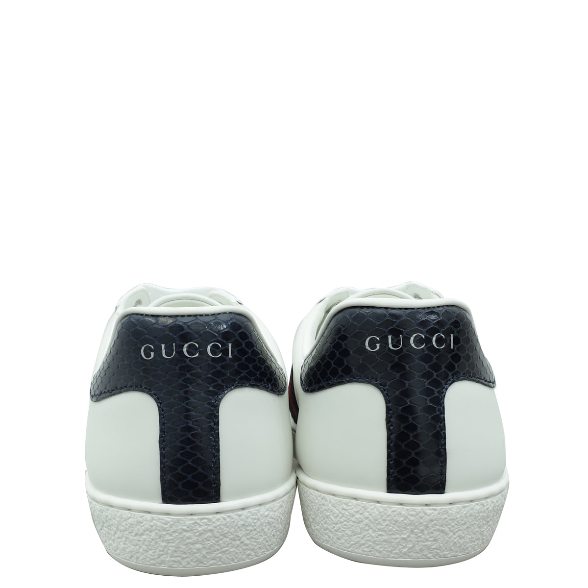 Material: White Leather and Navy/Red Web and Black Snakeskin Leather Detail on The Heel