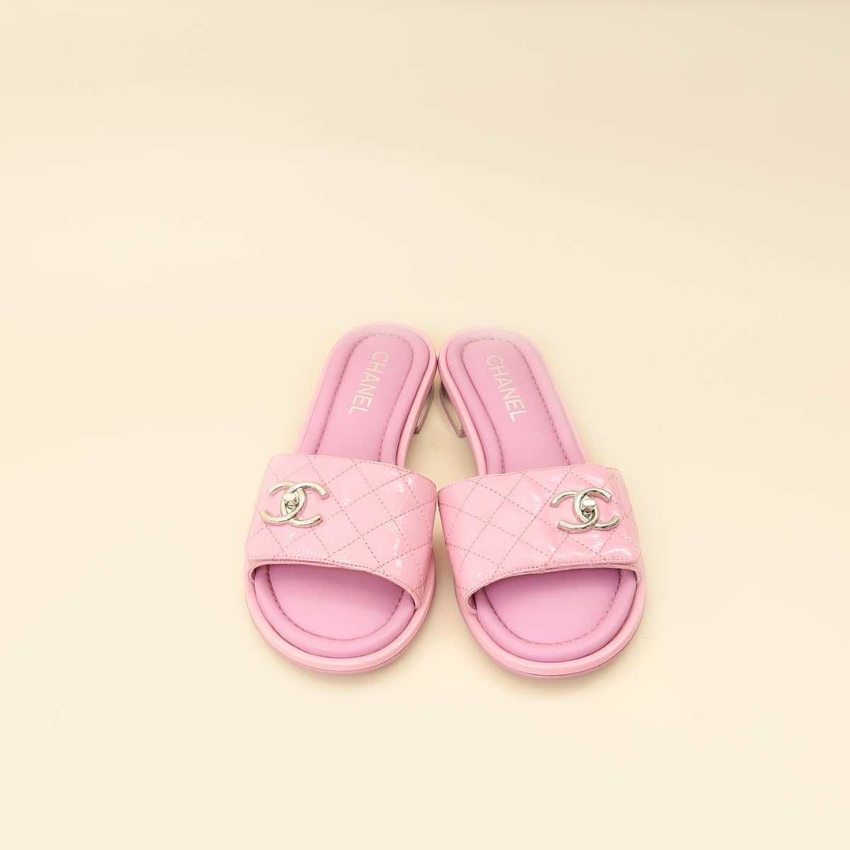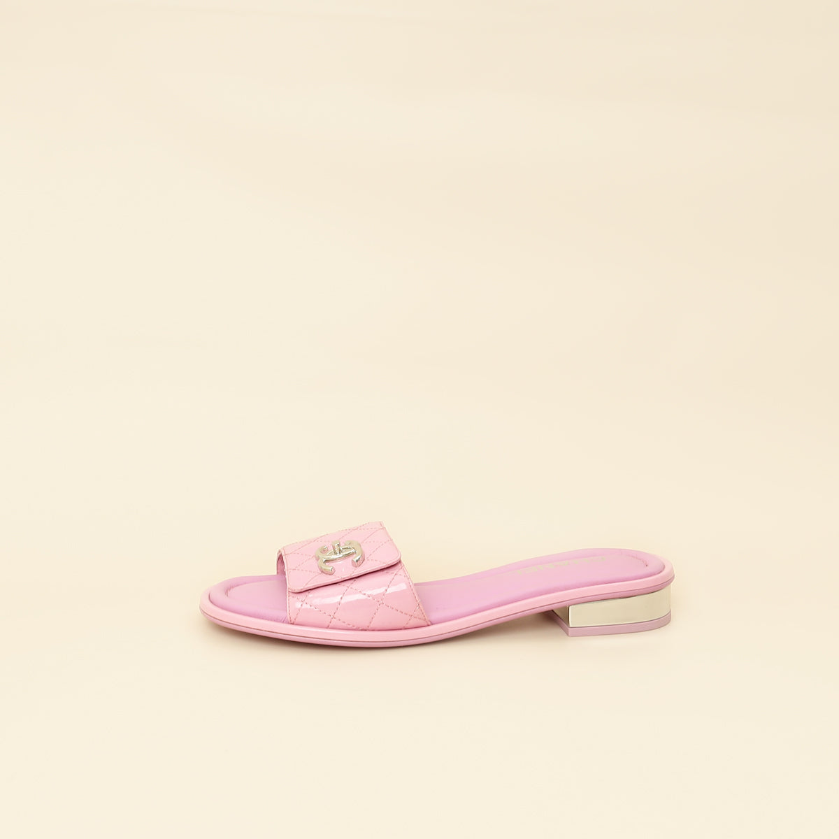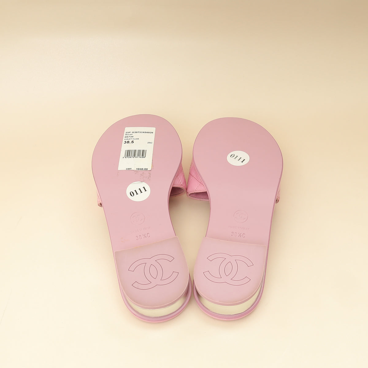 Chanel Lilac CC Twist Lock Quilted Slide Sandal 38.5