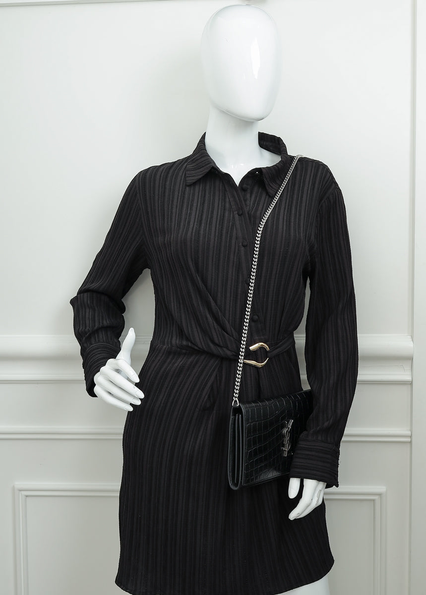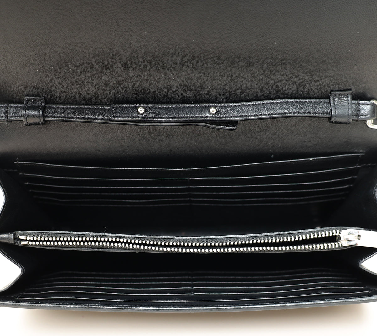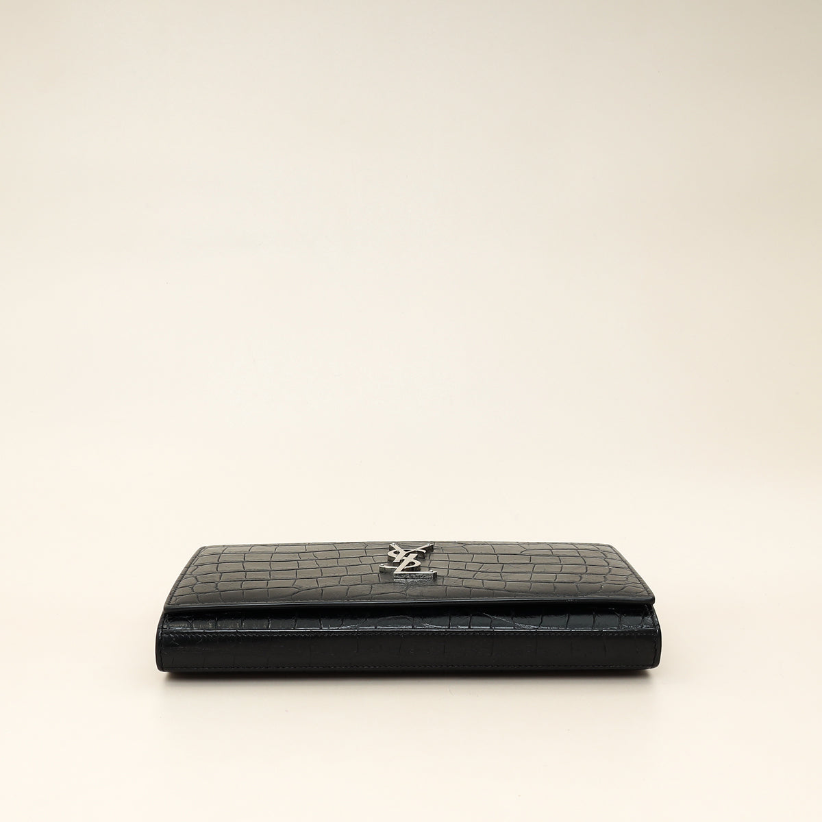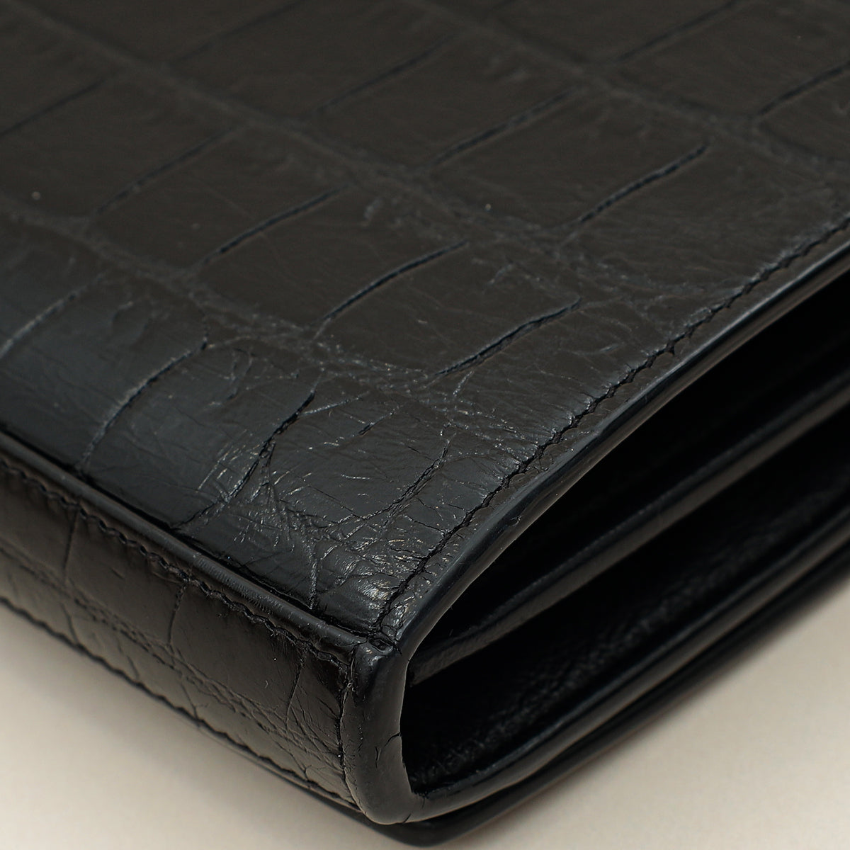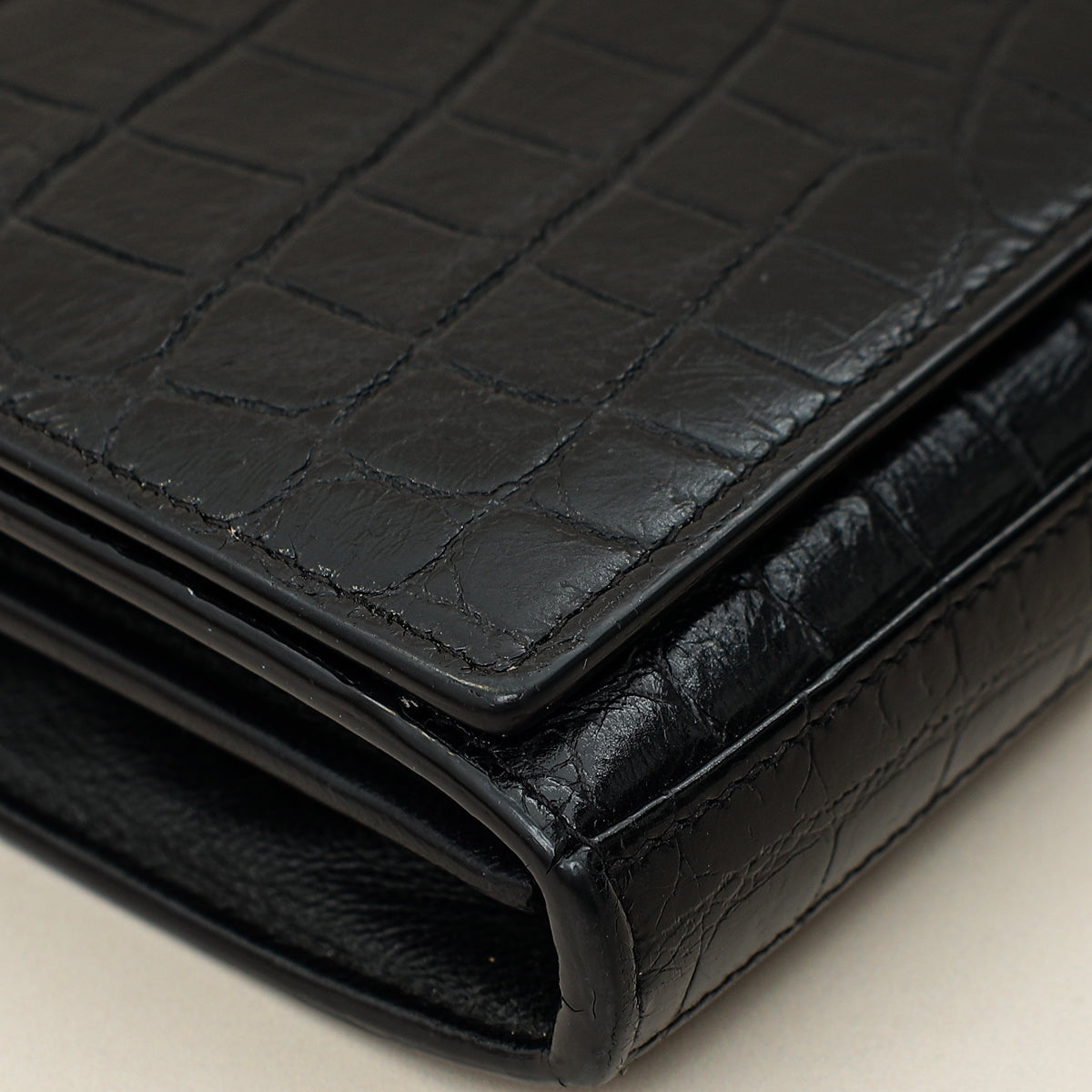 YSL Black Croco Embossed Monogram Kate Wallet On Chain
