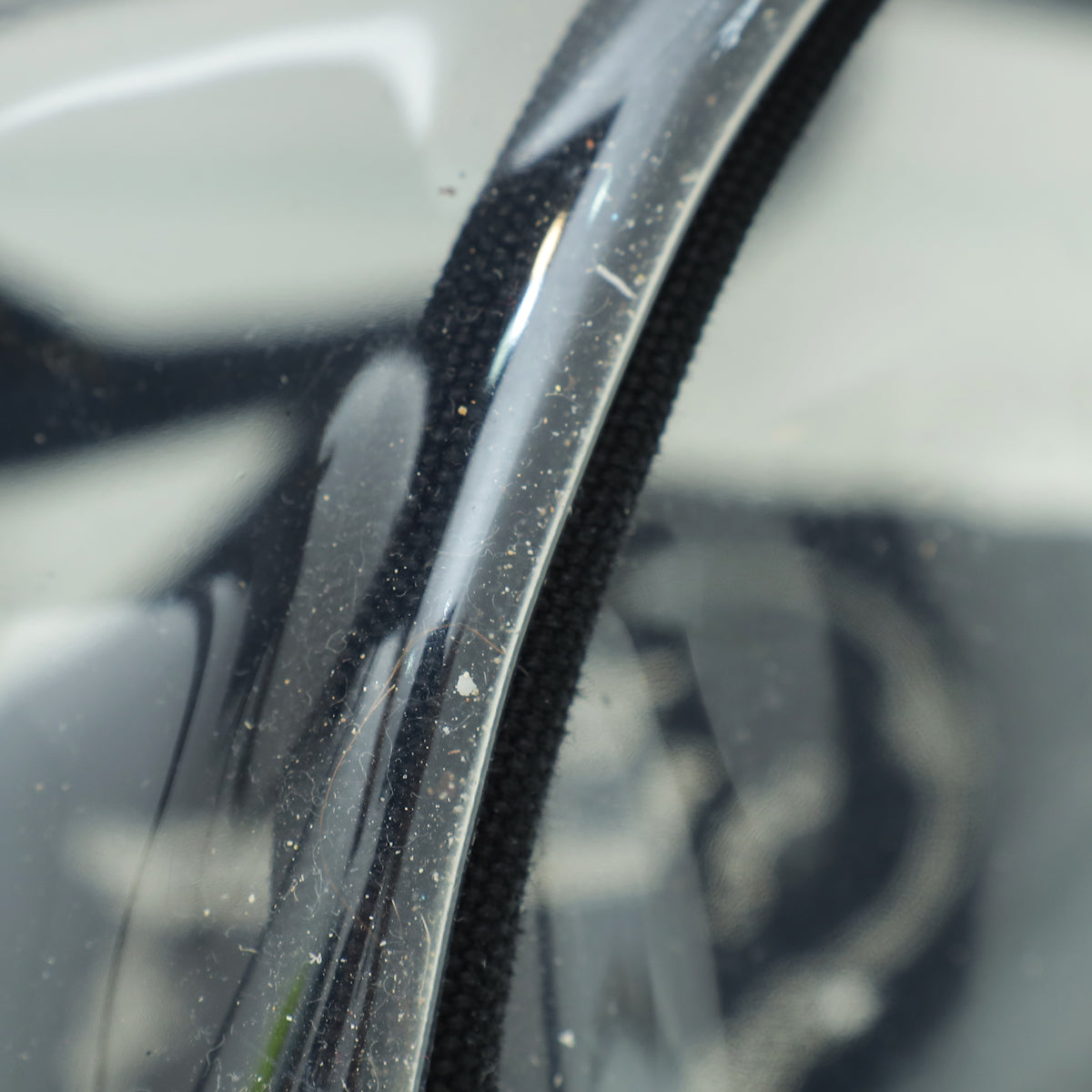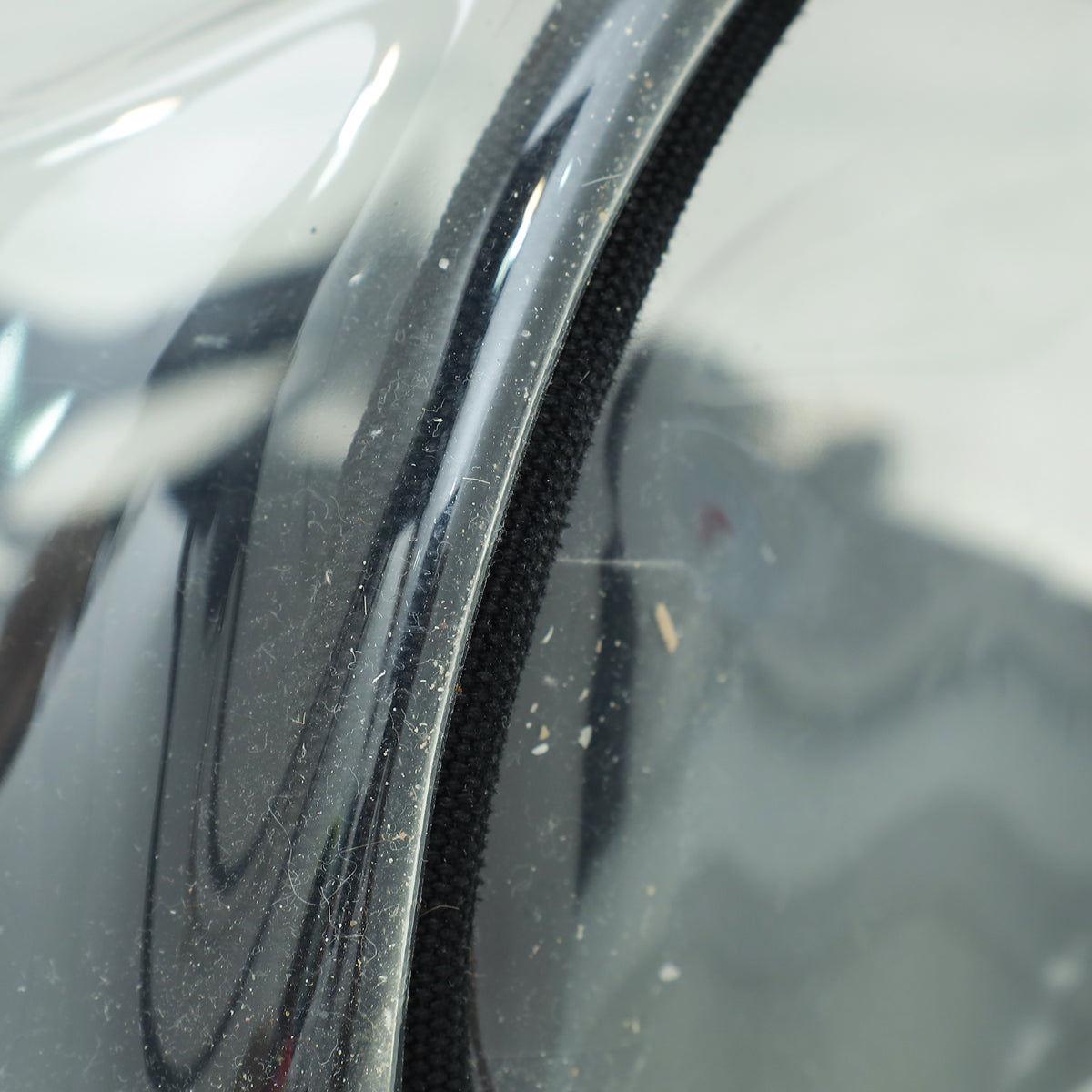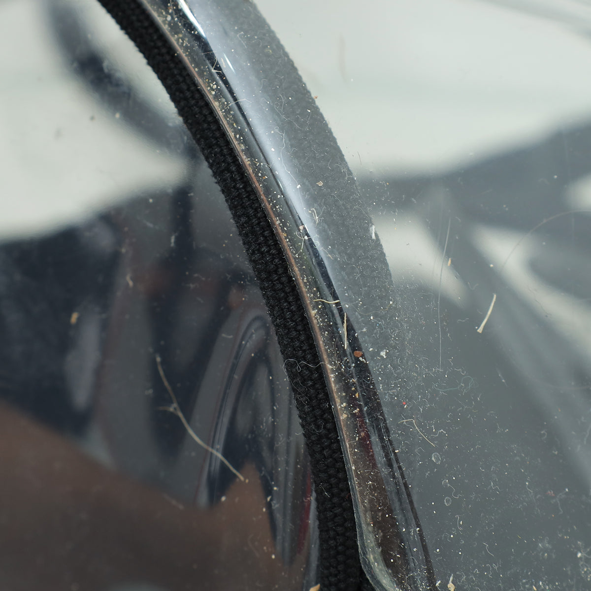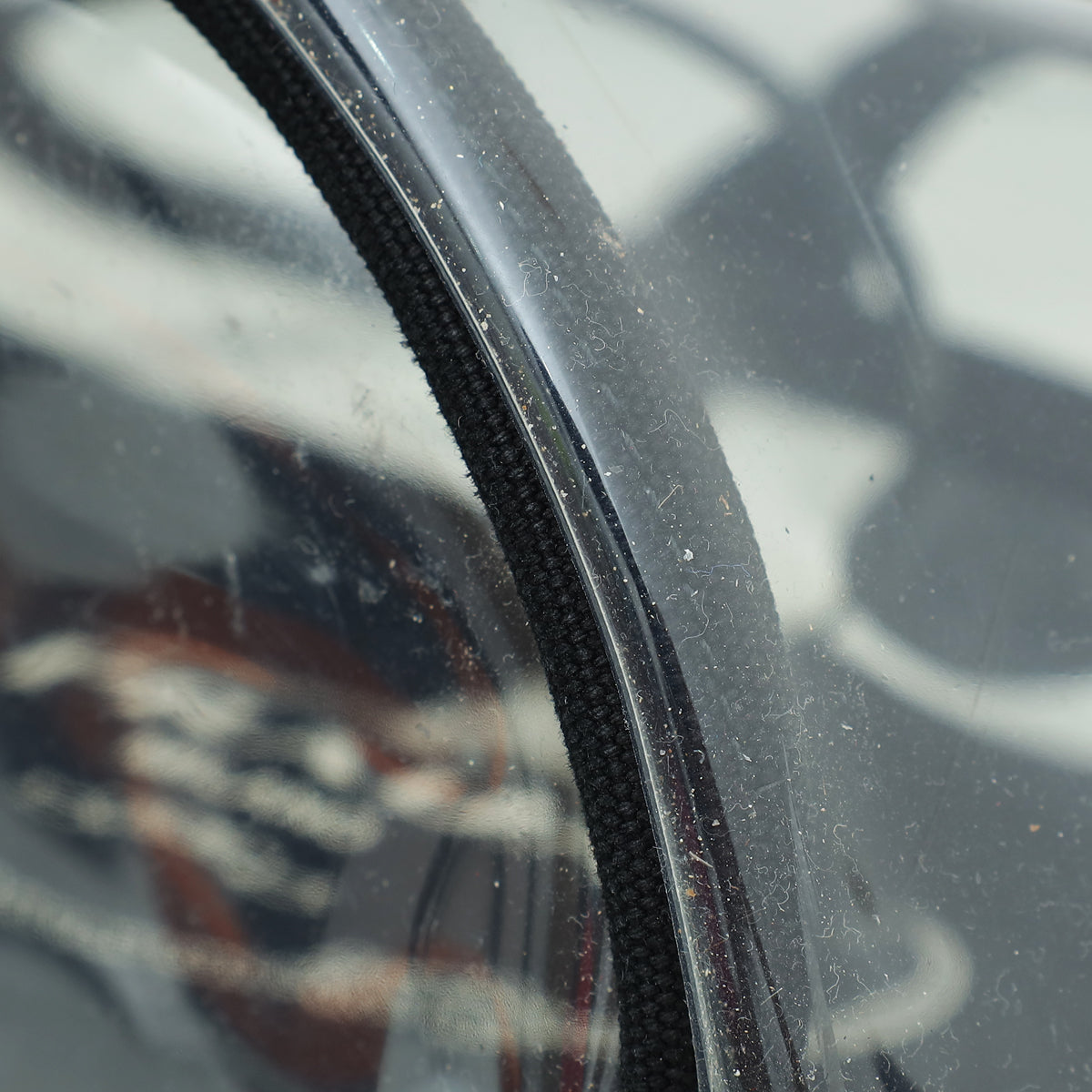 - المادة : فينيل شفاف مع قماش أسود وزخرفة جلدية