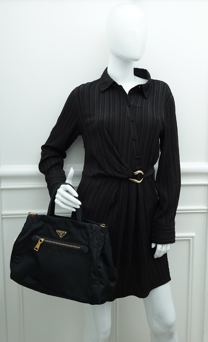 حقيبة برادا تيسوتو السوداء القابلة للتحويل