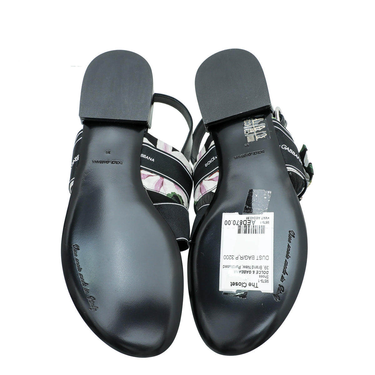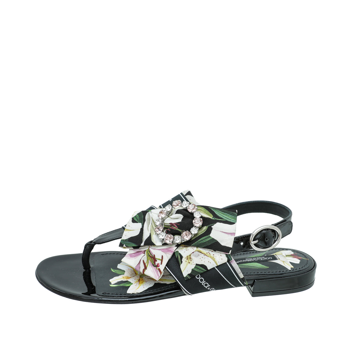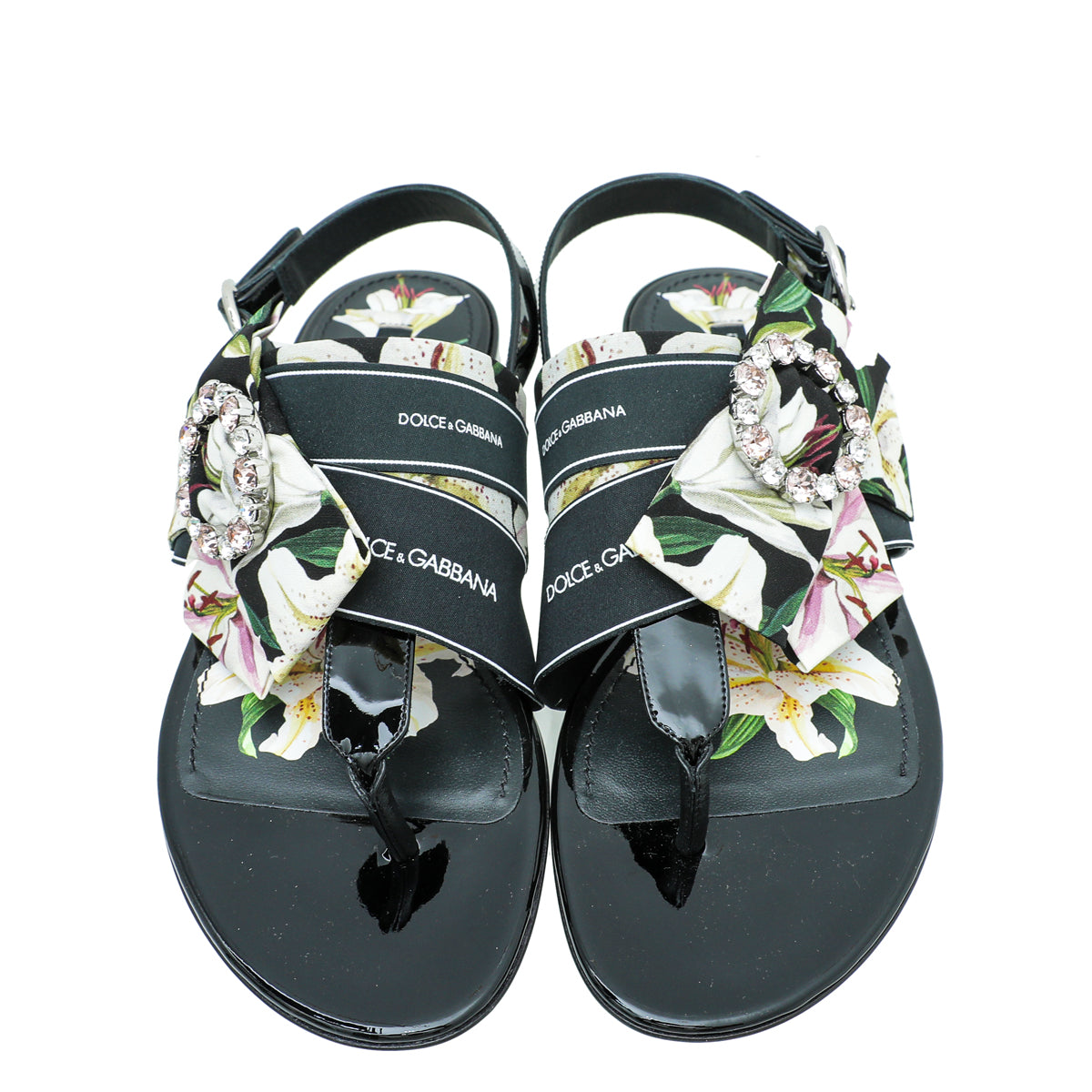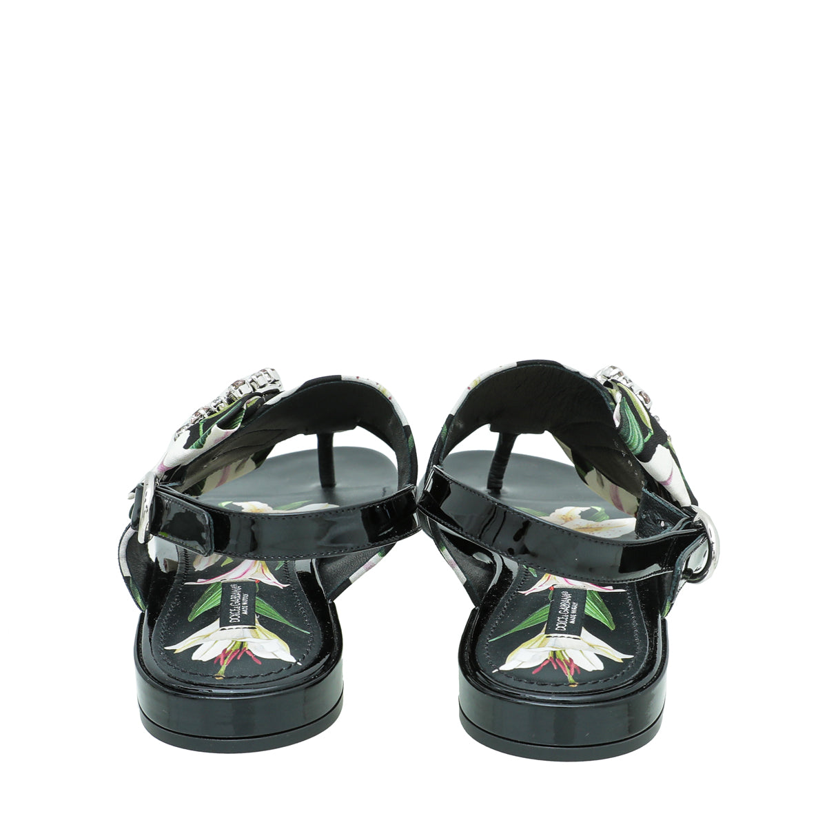 Dolce & Gabbana Multicolor Floral Crystal Buckle Thong Sandal
