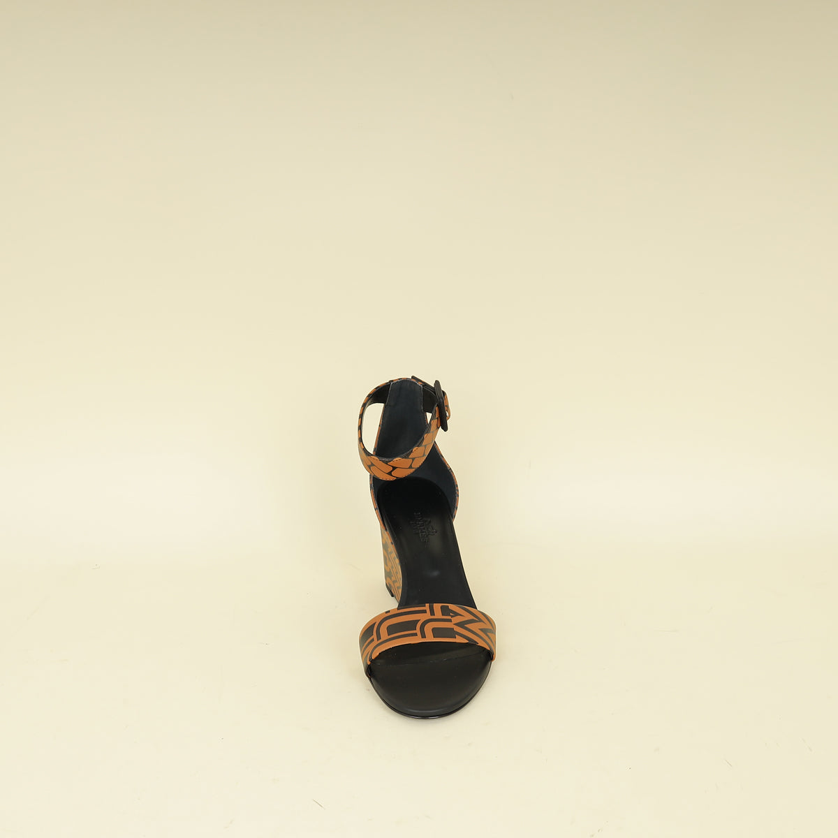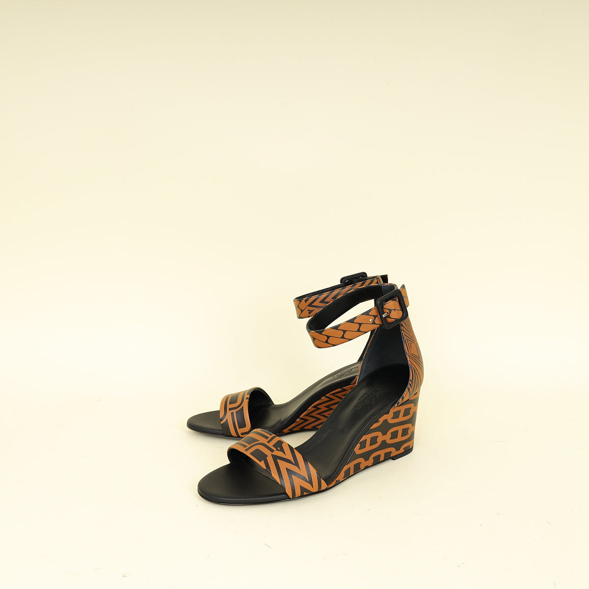 Hermes Bicolor Printed Acapulco Wedge Sandals 37