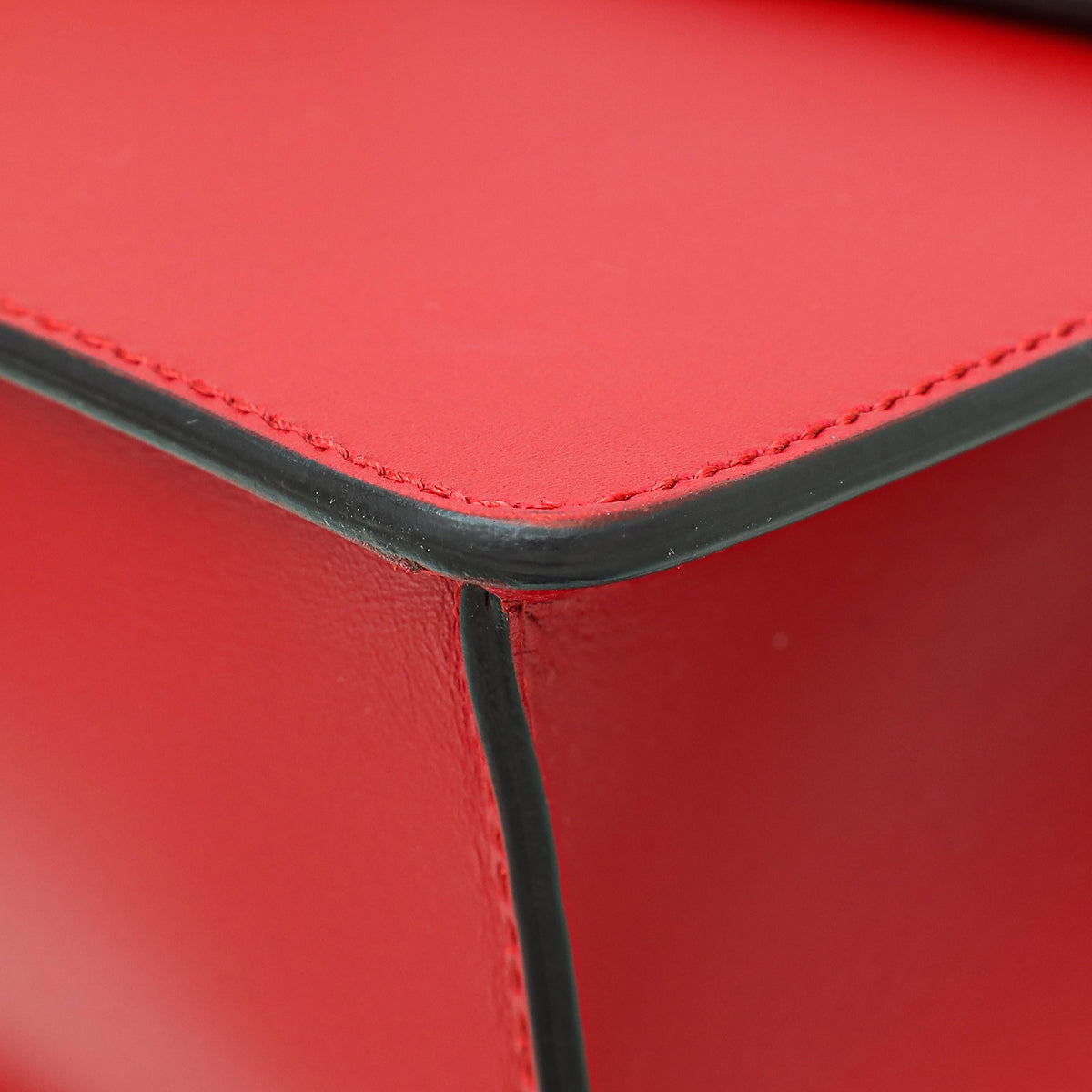 المادة : جلد أحمر مع تفاصيل ويب باللون الأزرق الداكن/الأحمر وحزام كتف من القماش باللون الأحمر/الأخضر