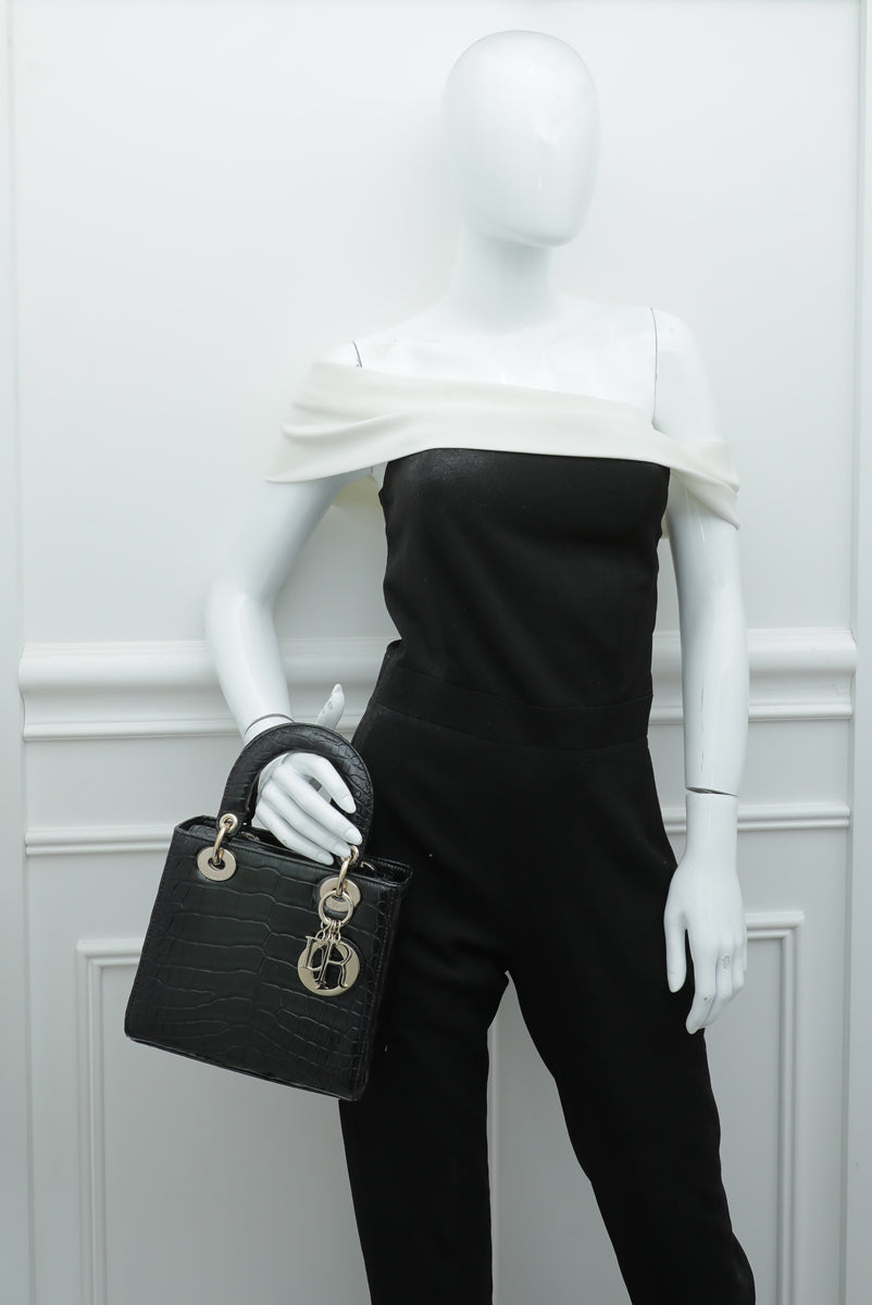 كريستيان ديور بلاك فورست الخضراء سيدة ديور التمساح حقيبة متوسطة