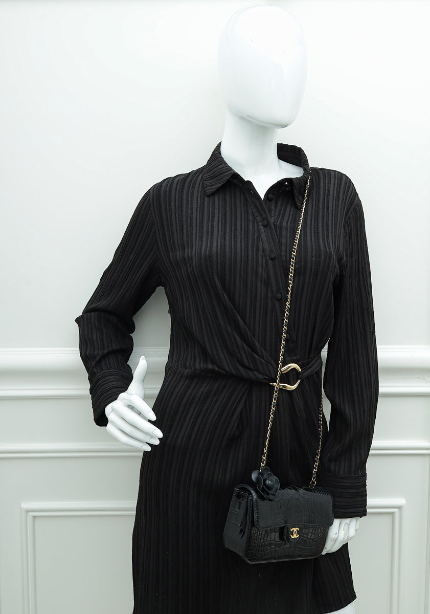 حقيبة شانيل التمساح CC الكلاسيكية زهرة الكاميليا السوداء الصغيرة