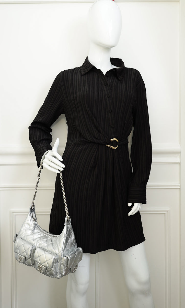 Chanel Metallic Silver CC Quilted Trendy Pockets Hobo Large Bag