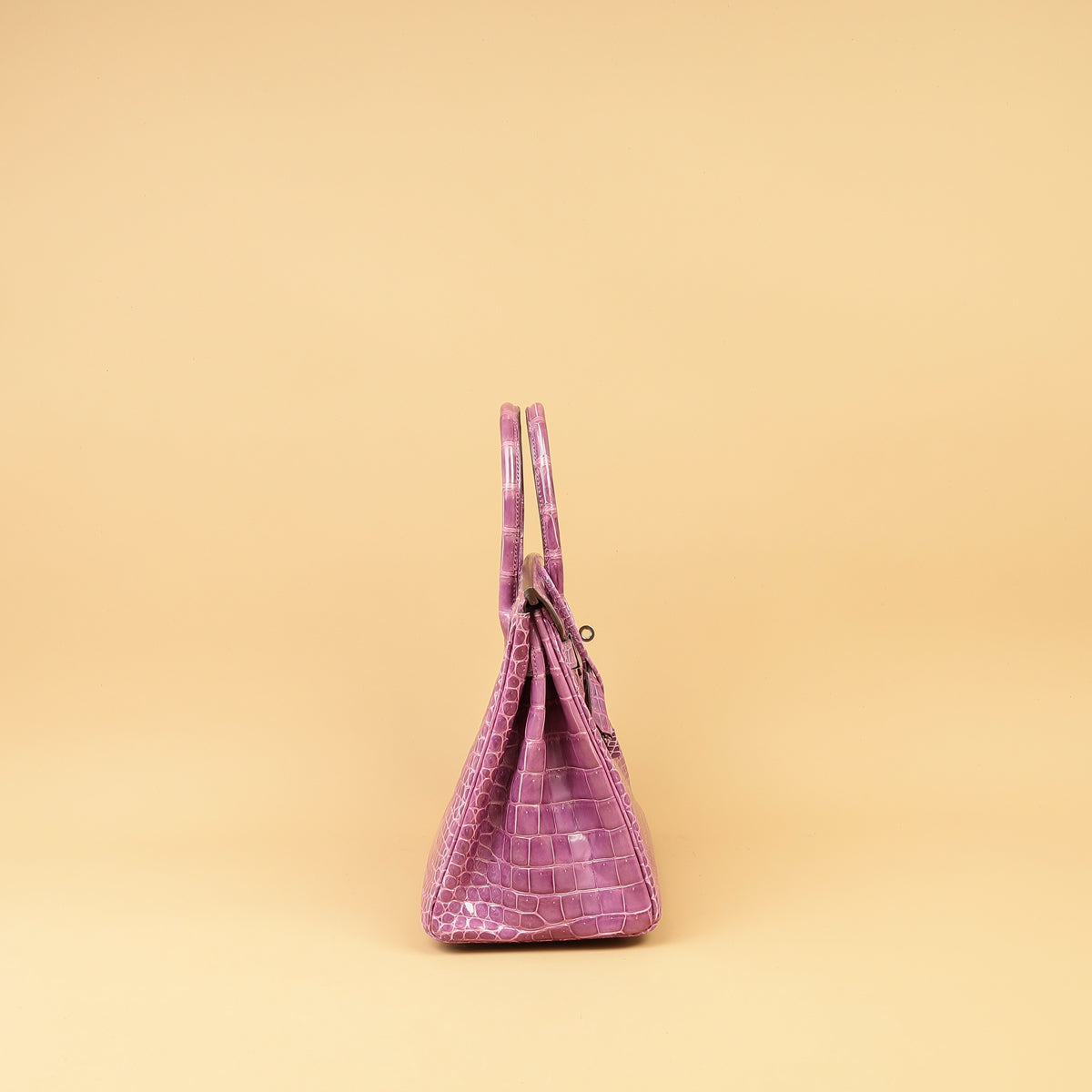 Hermes Violet Shiny Porosus Crocodile Birkin 30 Bag