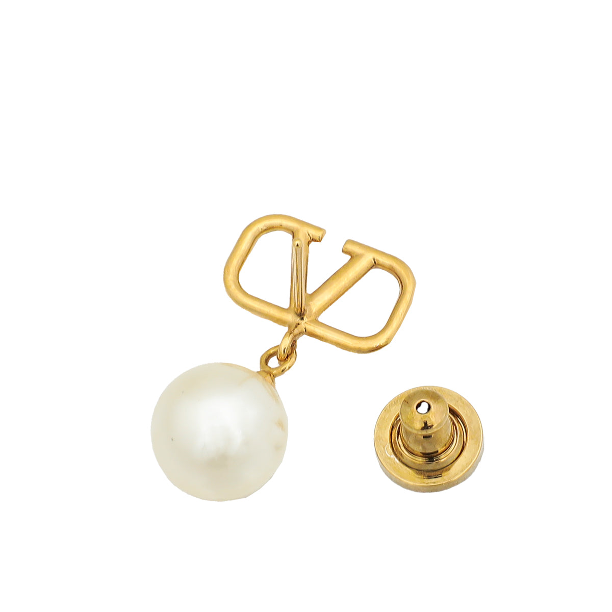 Valentino Gold VLogo Signature Swarovski Pearl Earrings