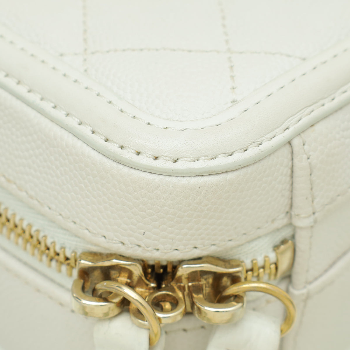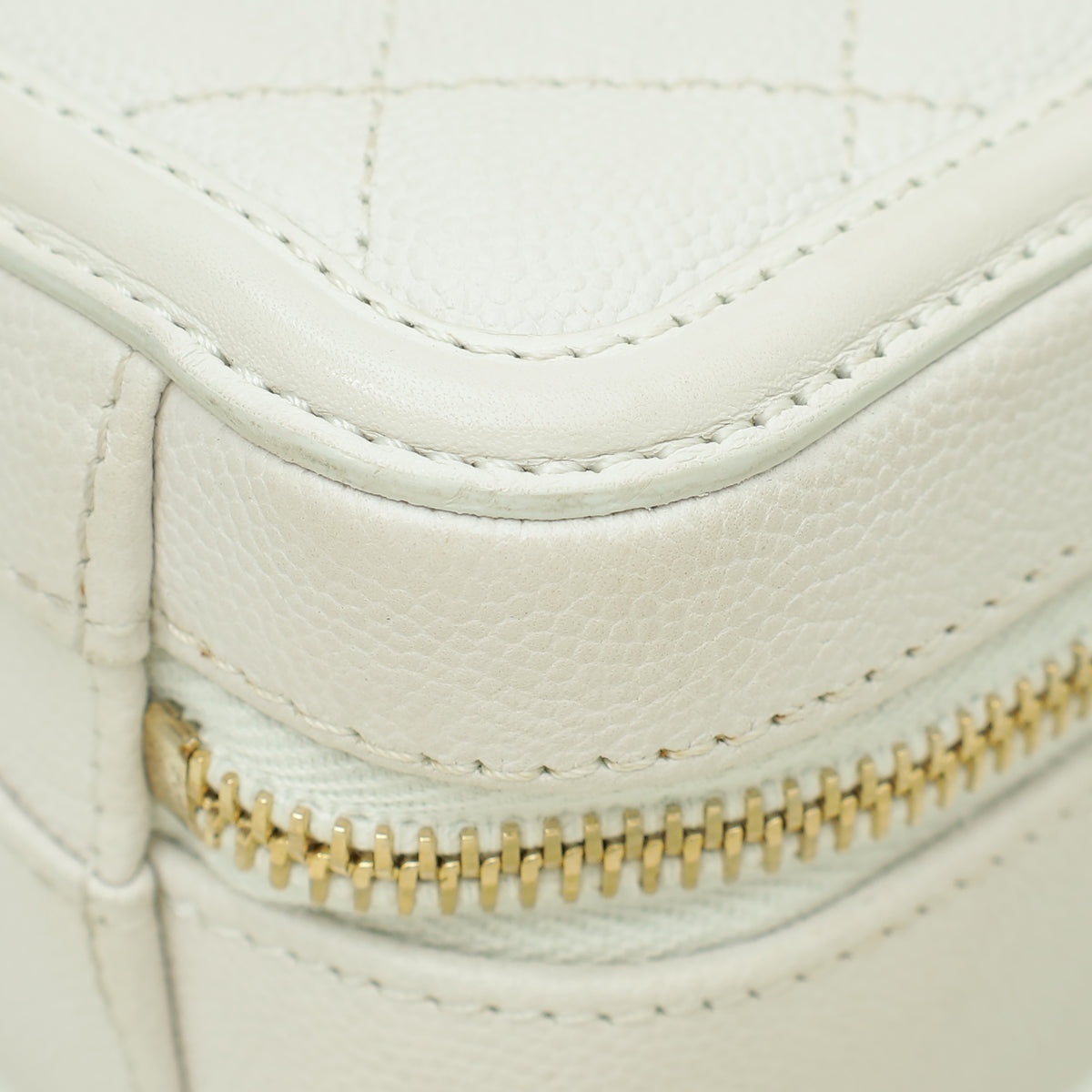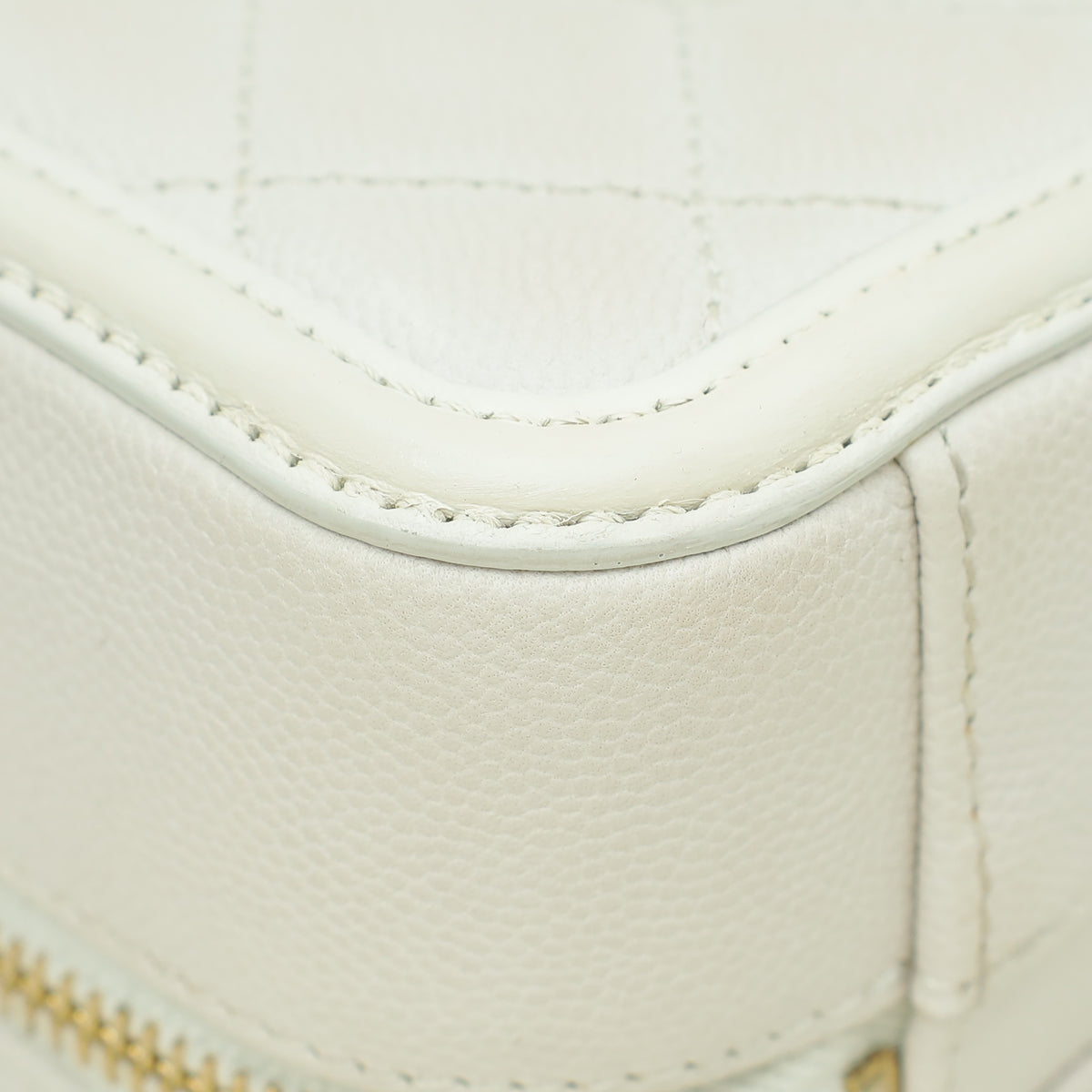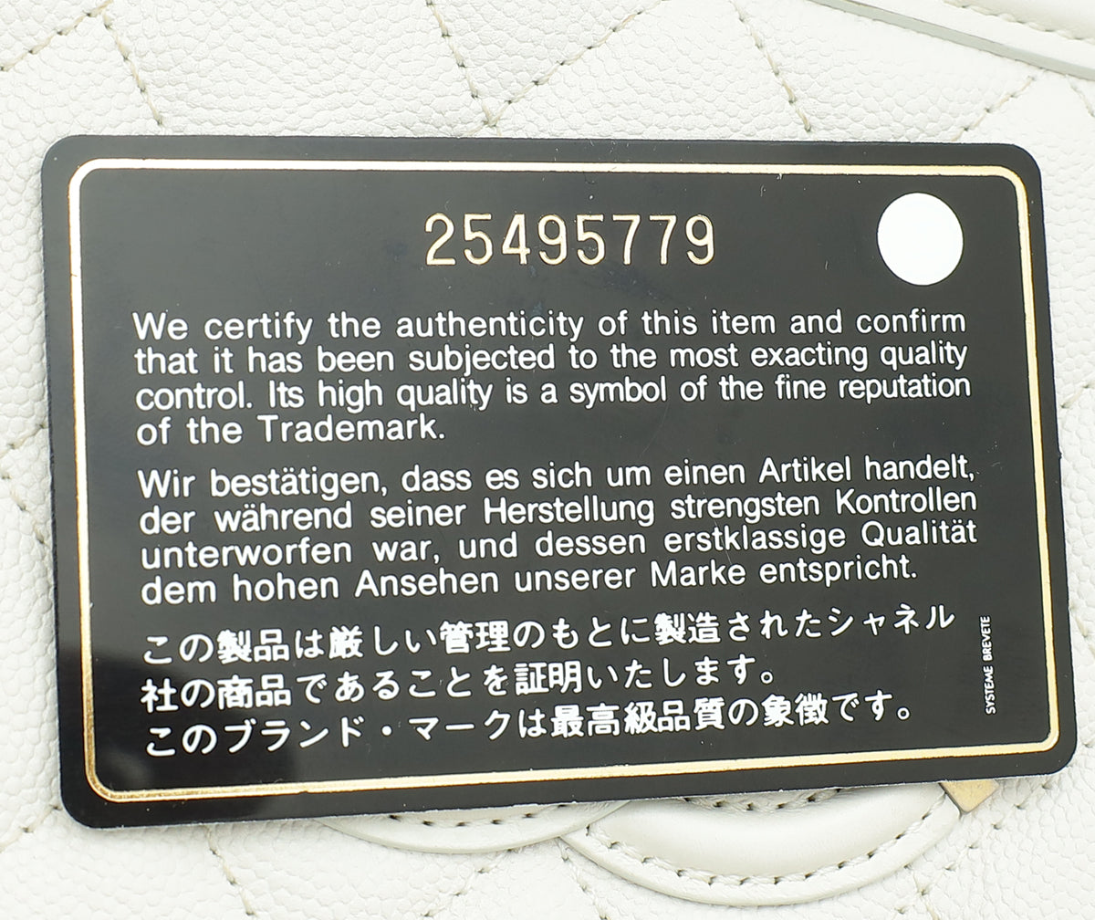 - Material: White Quilted Caviar Leather and Calf Leather Trim
