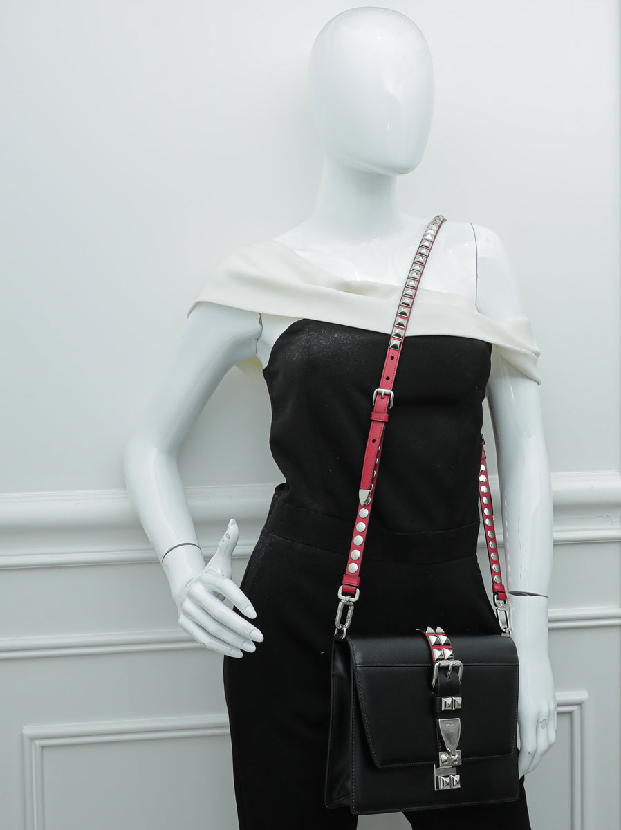 المواد : جلد العجل الأسود/الأحمر في المدينة & amp ؛ جلد سافيانو الأسود مع ترصيع