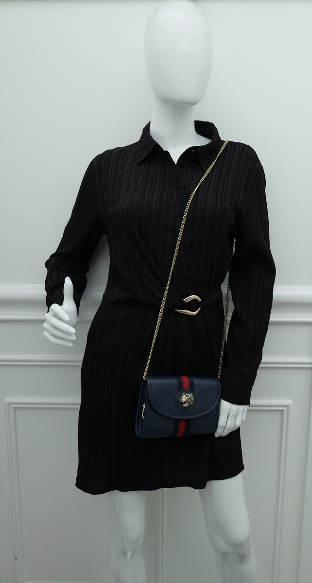 حقيبة كتف غوتشي راجا ويب ميني باللون الأزرق الداكن