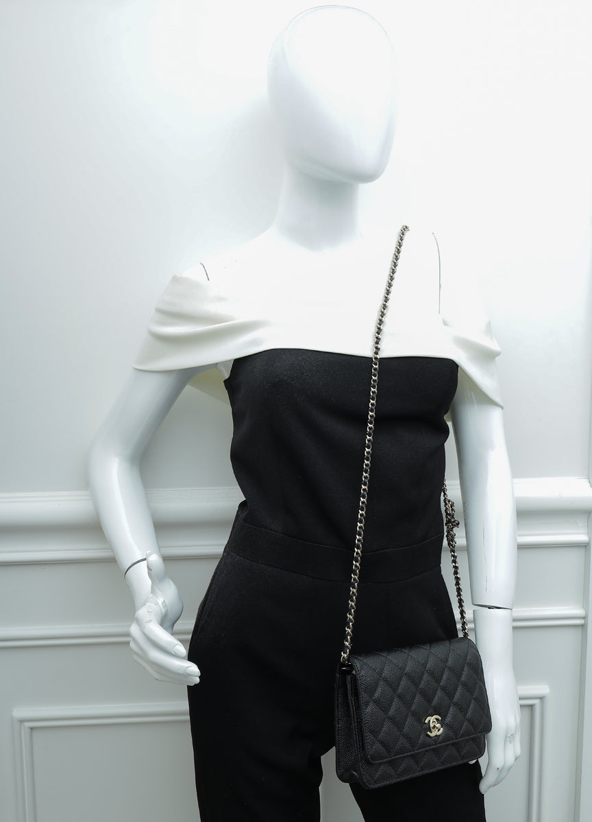Chanel Black CC Bow Bow Wallet على السلسلة