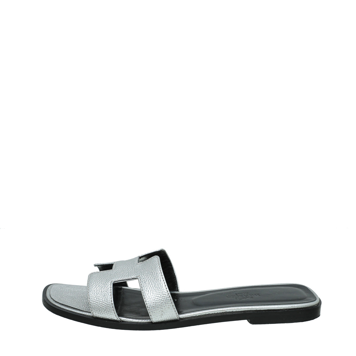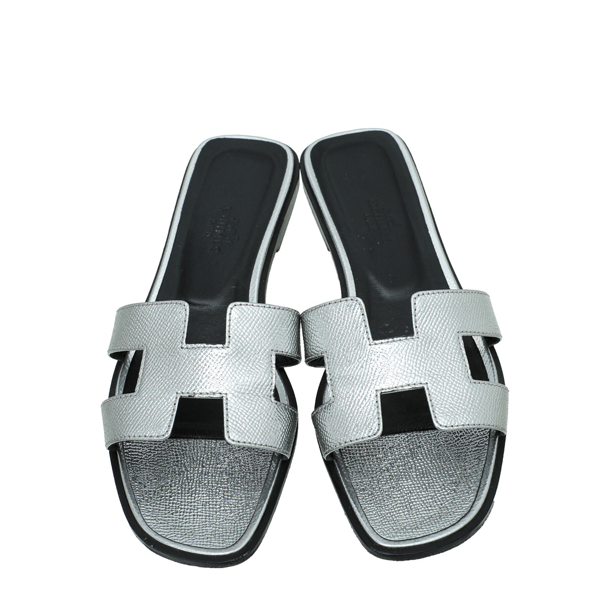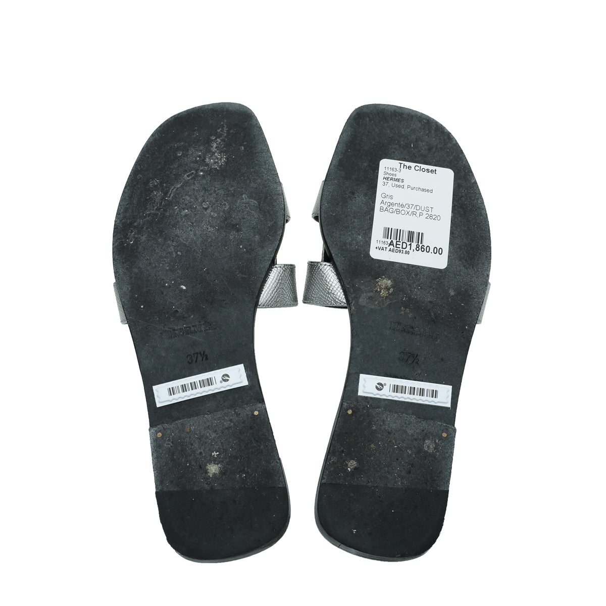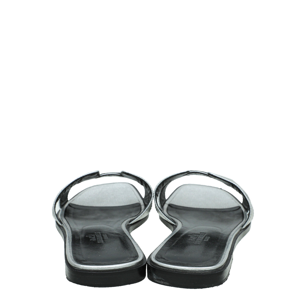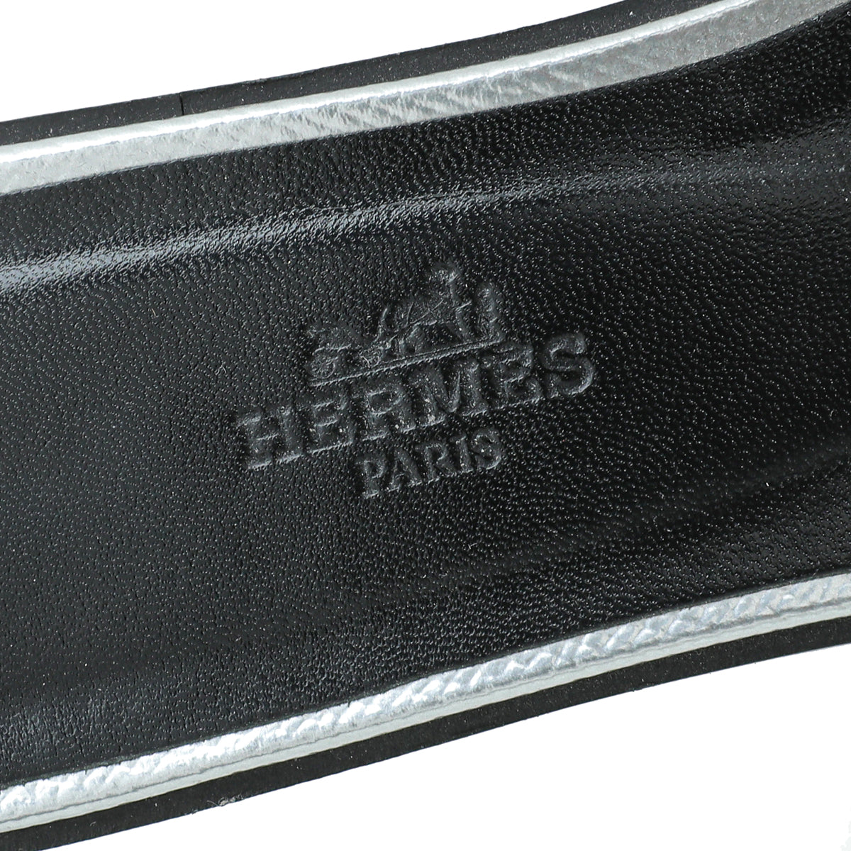 Hermes Gris Argente Oran Metallic Sandal 37.5