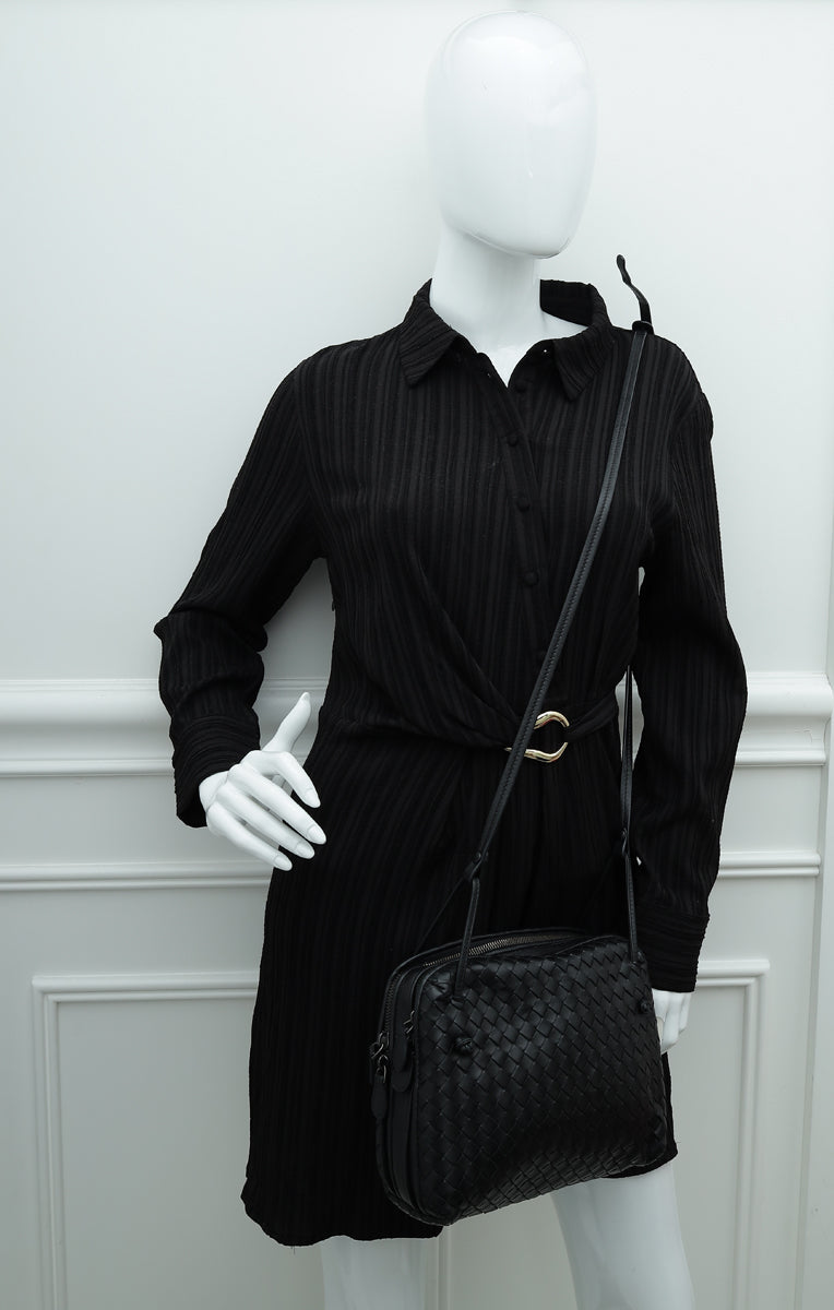 Bottega Veneta Black intrecciato nappa nodini double zip crossbody bag
