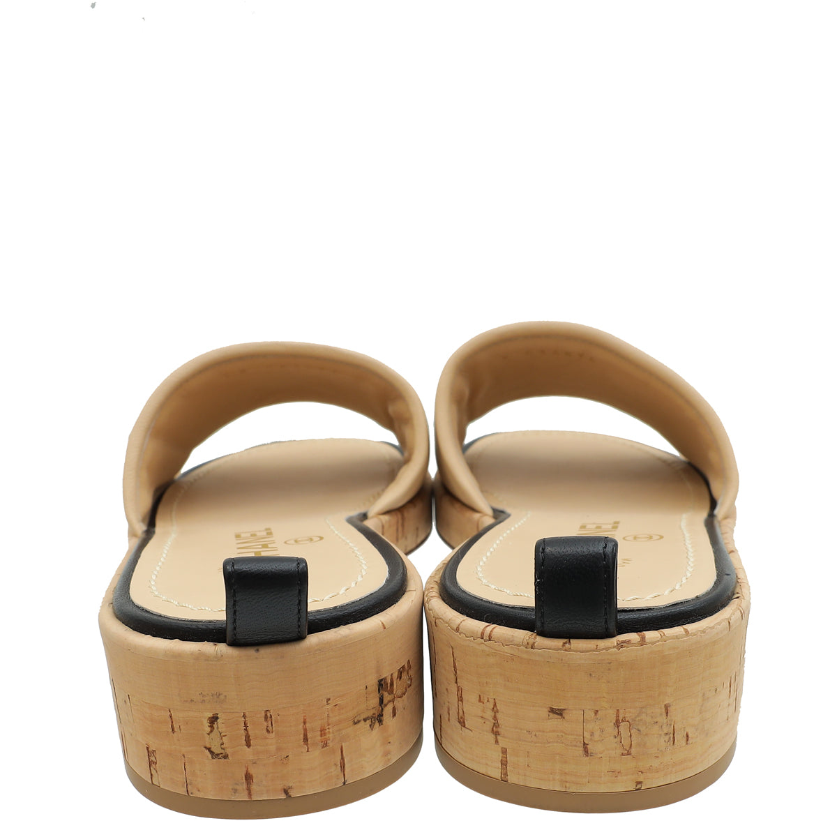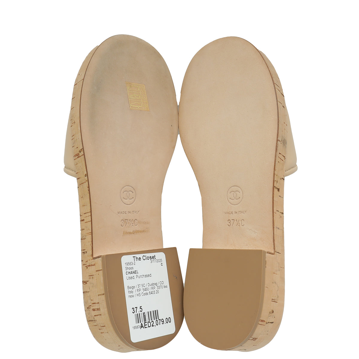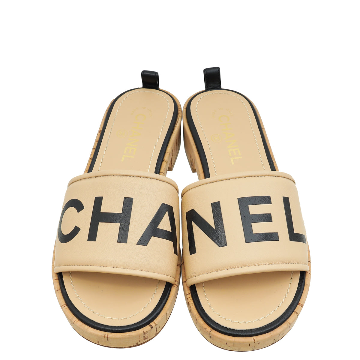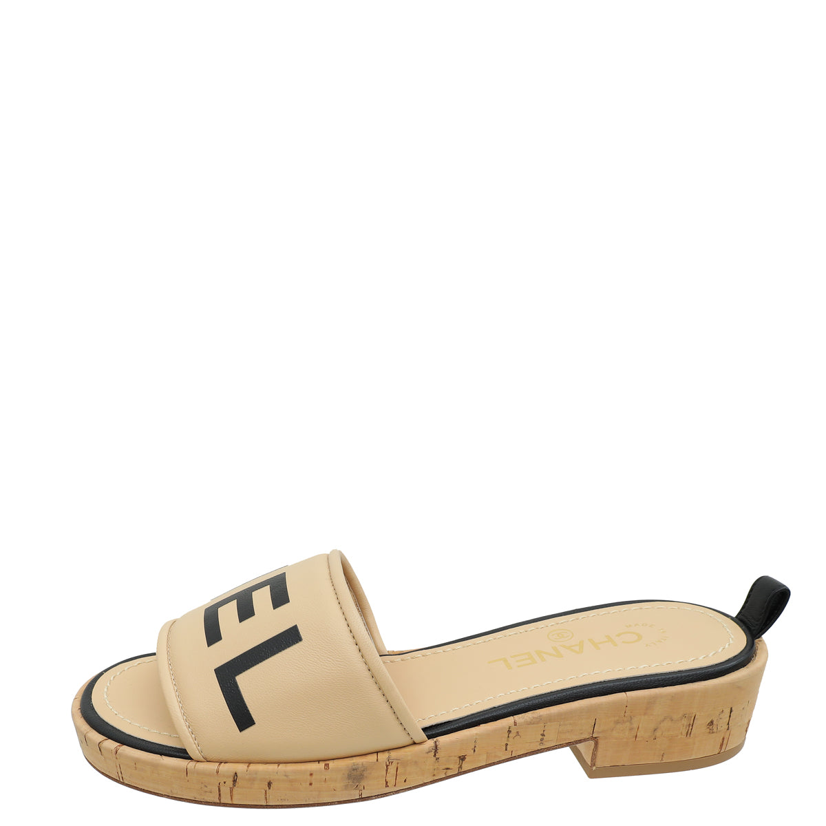Chanel Beige Chanel Logo Mules Sandals 37.5