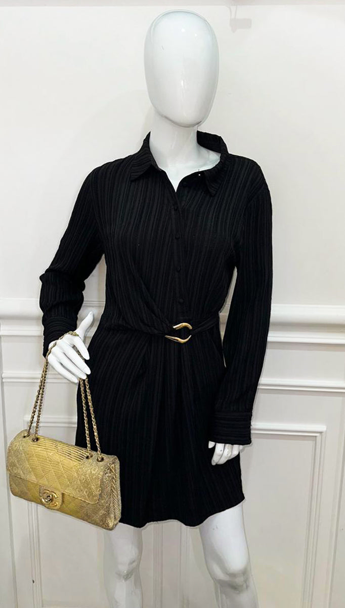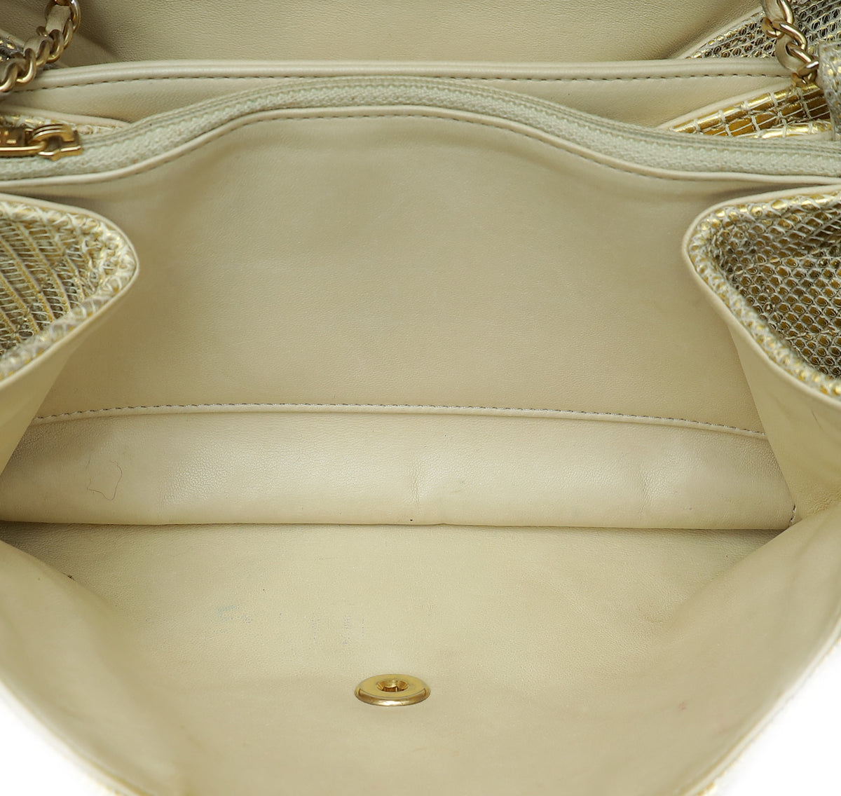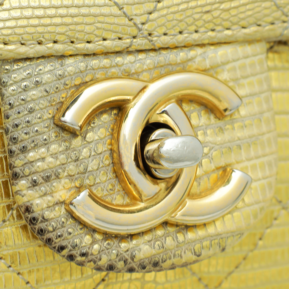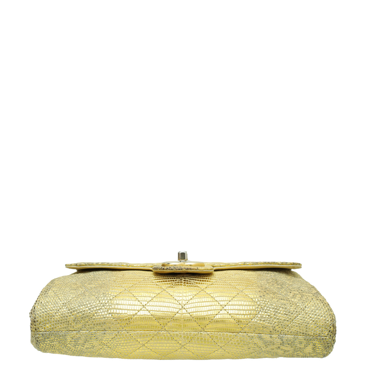 حقيبة شانيل CC ذهبية معدنية سحلية الأكورديون