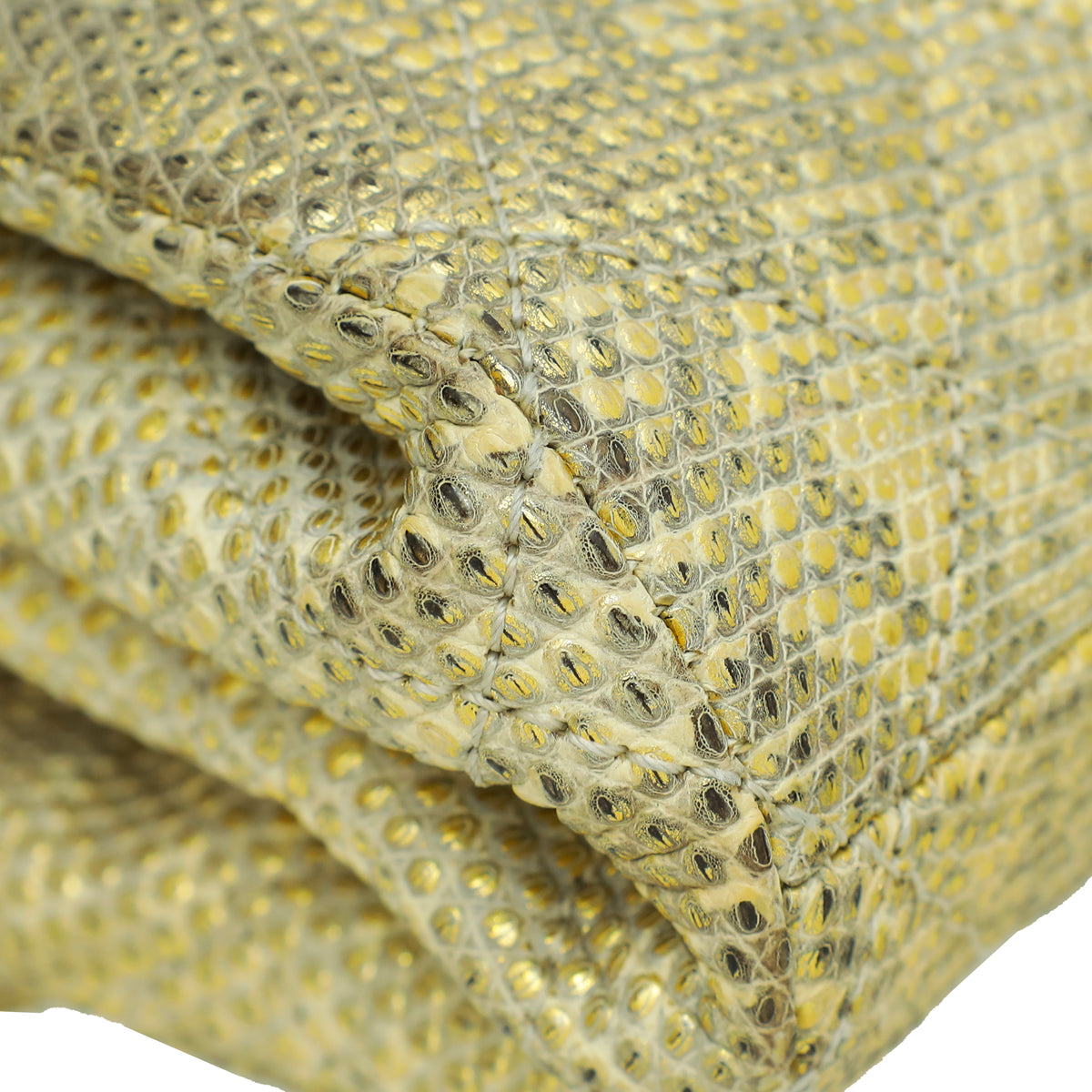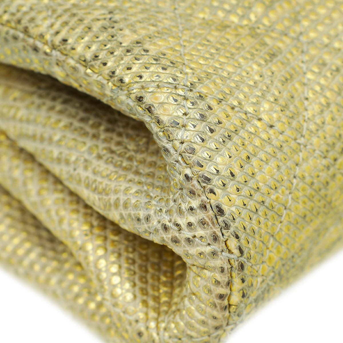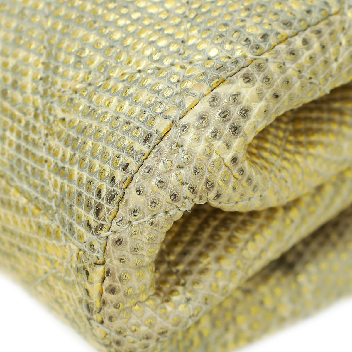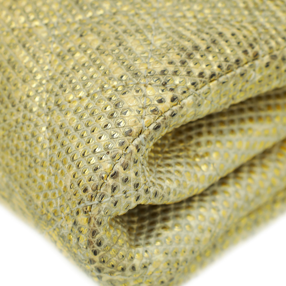 - المادة : جلد سحلية ذهبي معدني