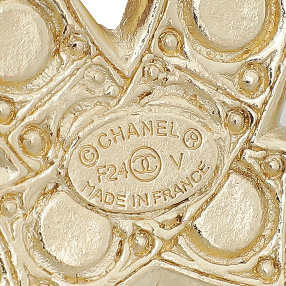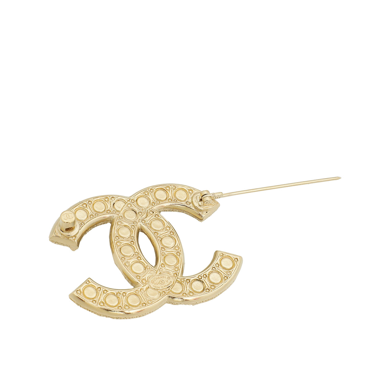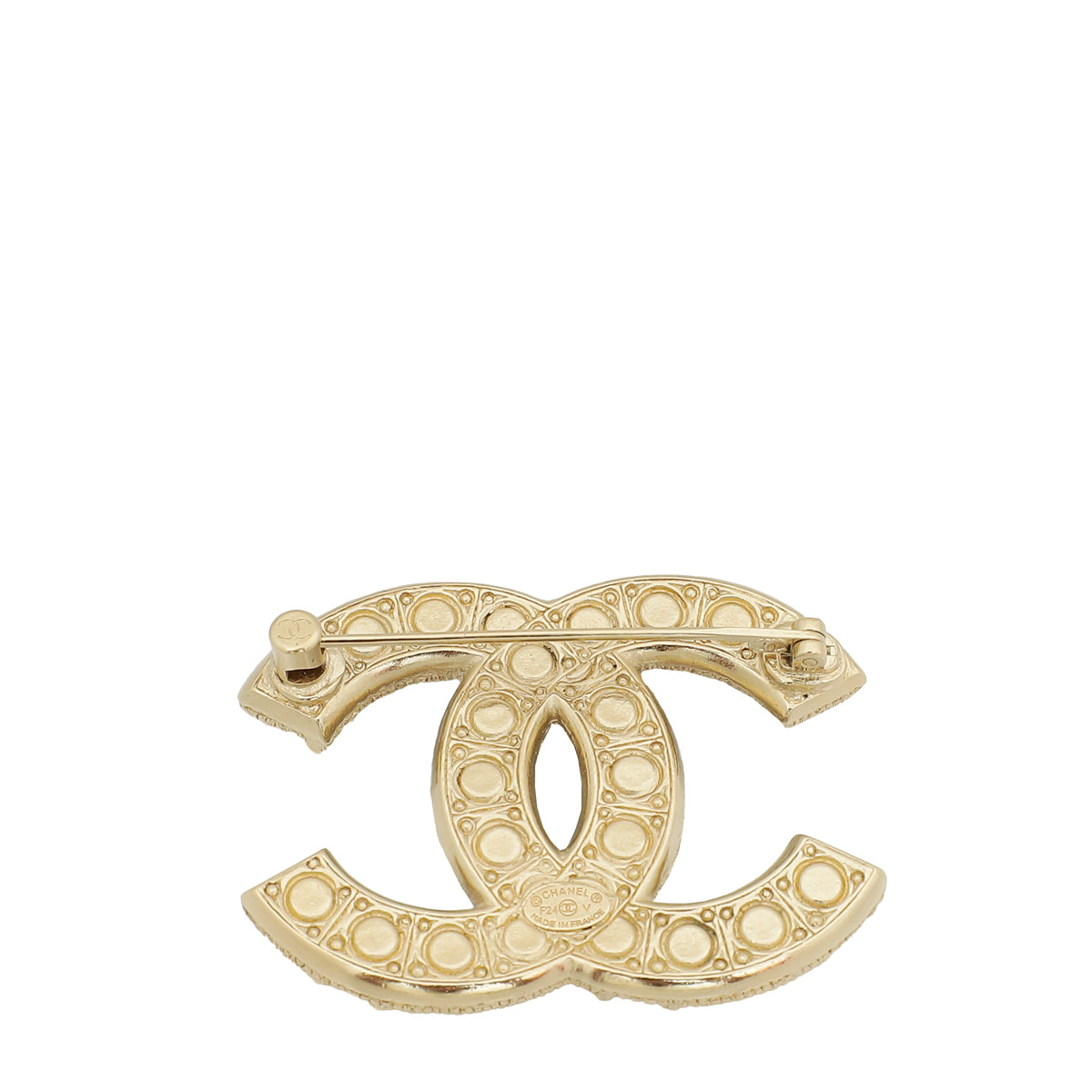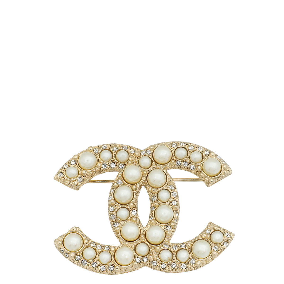 - Material: Gold Tone Metal CC Logo with Faux Pearls