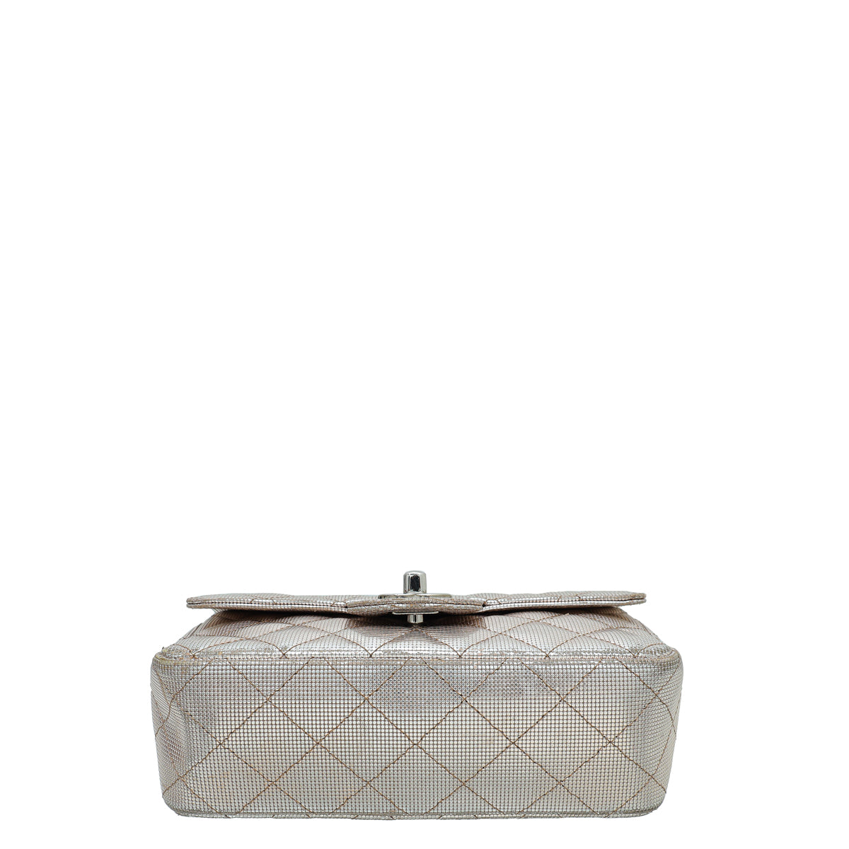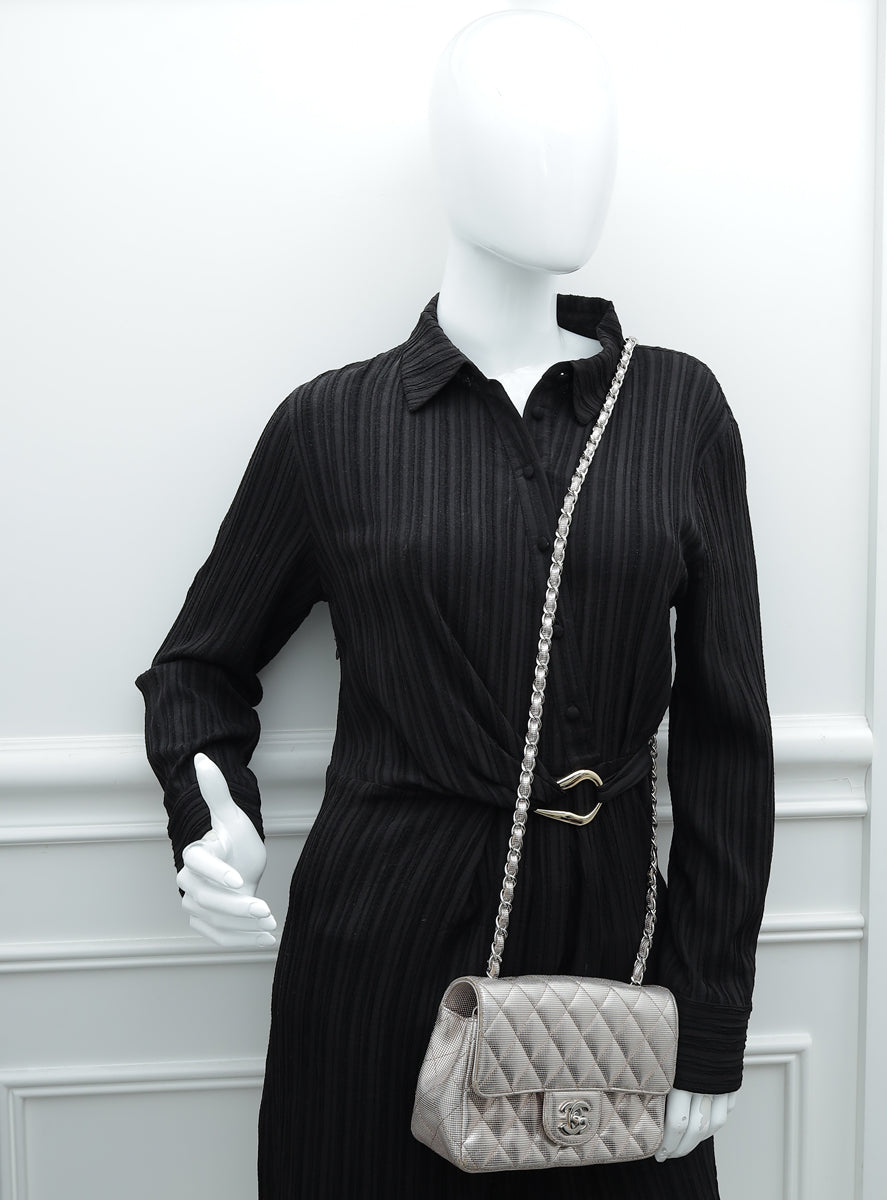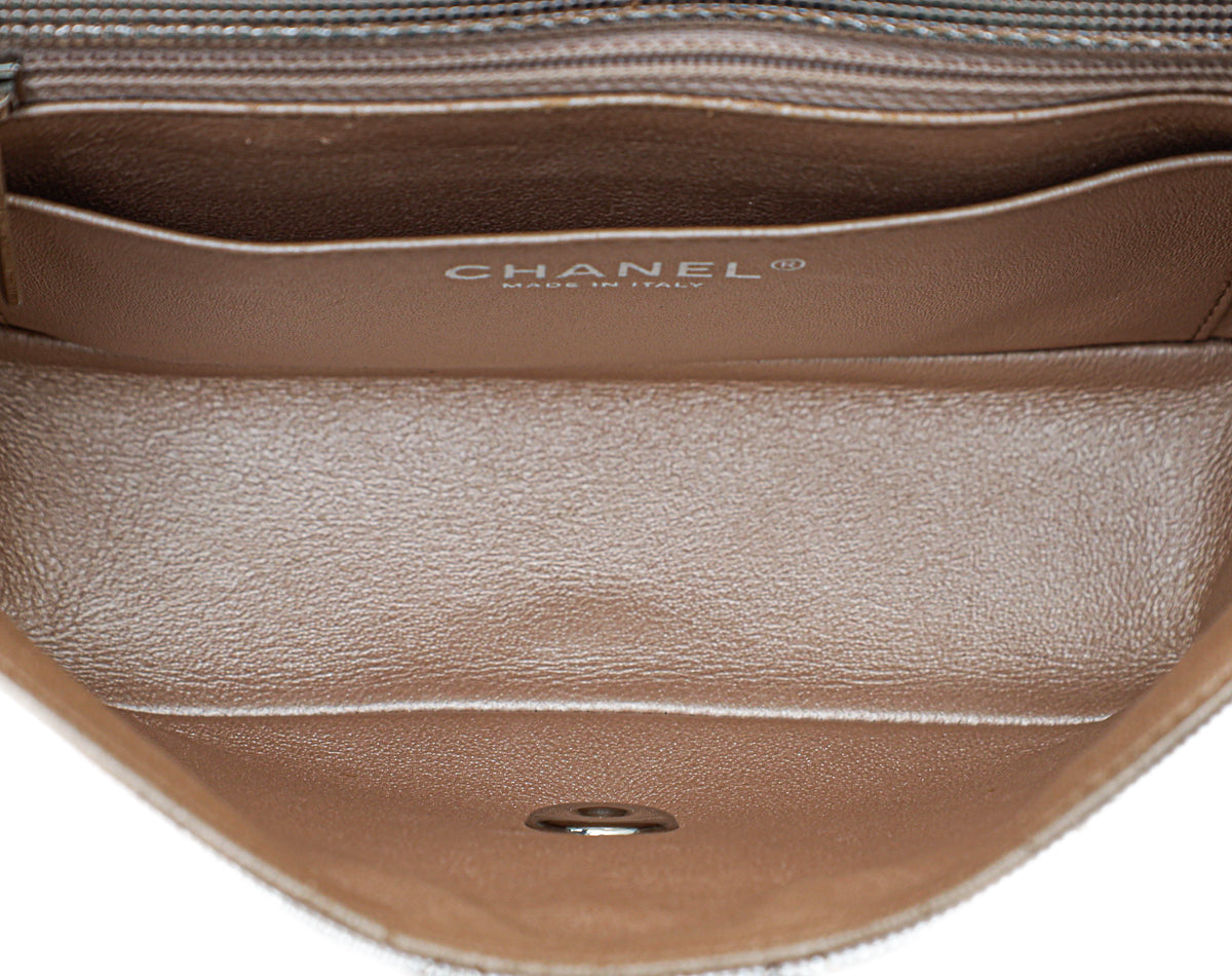 حقيبة شانيل مستطيلة صغيرة ذات تأثير بكسل معدني وذهبي وردي CC