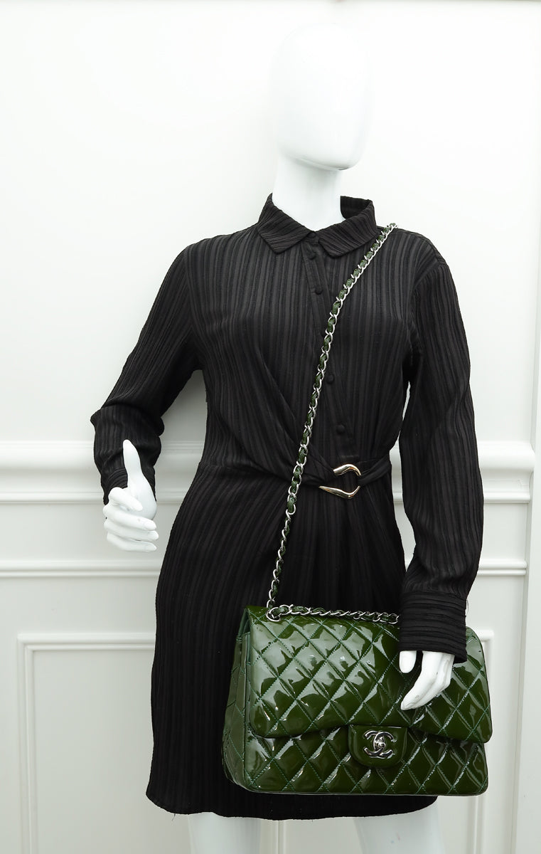 Chanel Olive CC Classic Double Flap Jumbo Bag