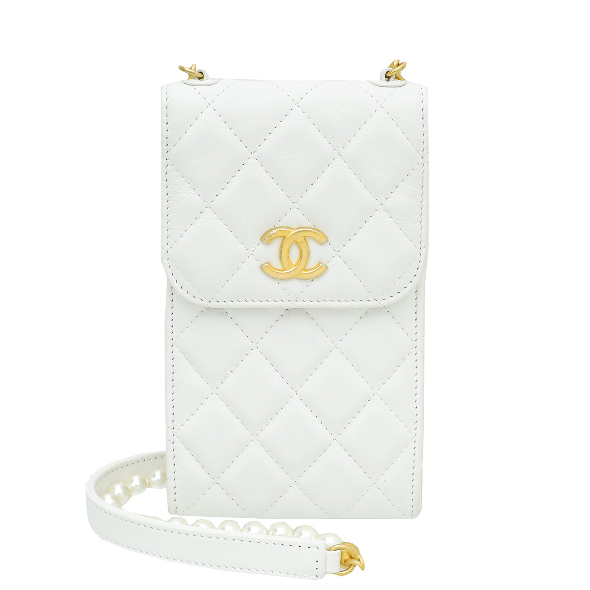 Chanel White CC Pearl Strap Phone Holder-Chanel-THE CLOSET