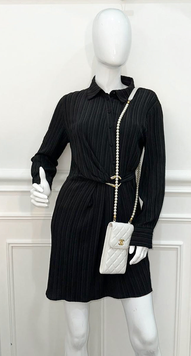 حامل الهاتف بحزام اللؤلؤ الأبيض من شانيل CC