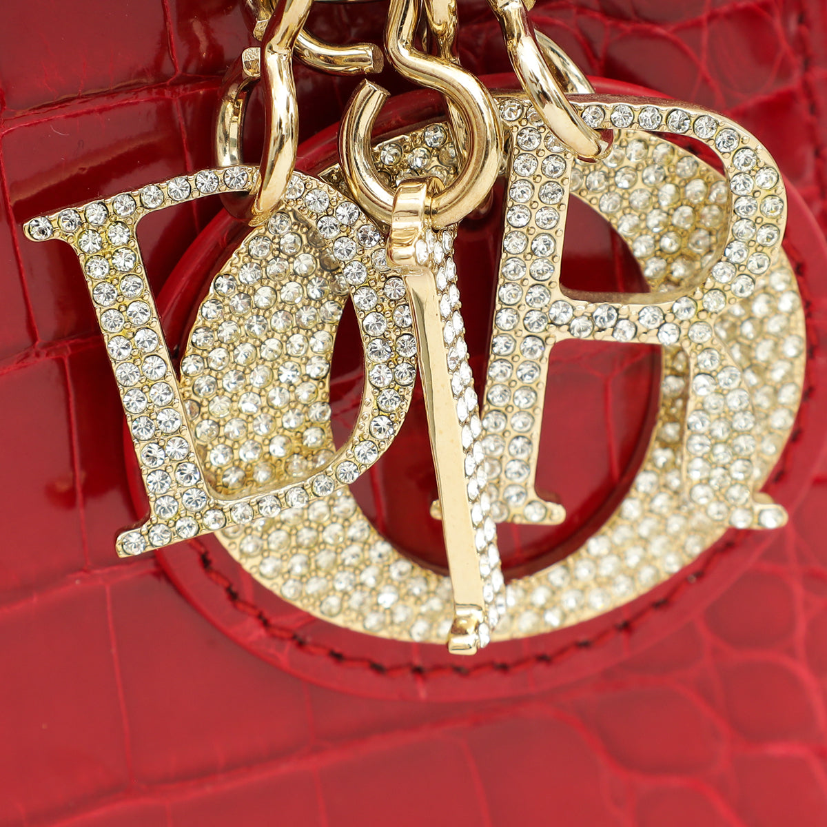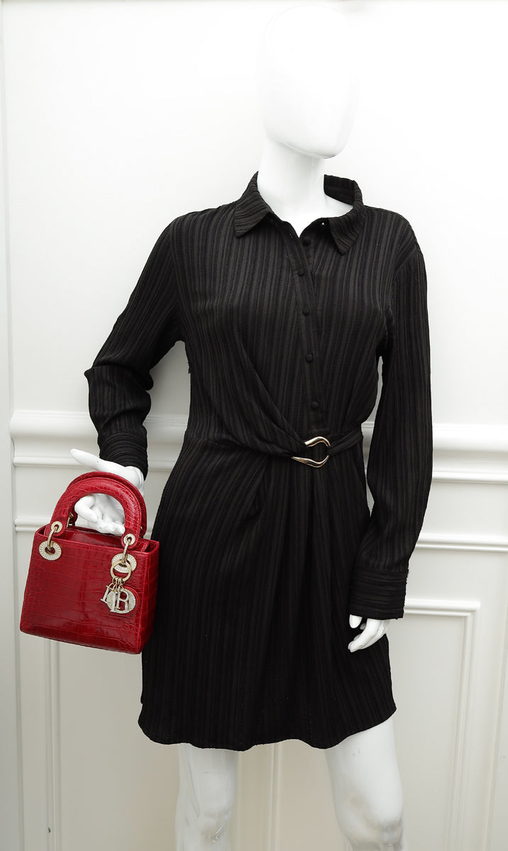 Christian Dior Red Alligator Lady Dior Mini Crystal Bag