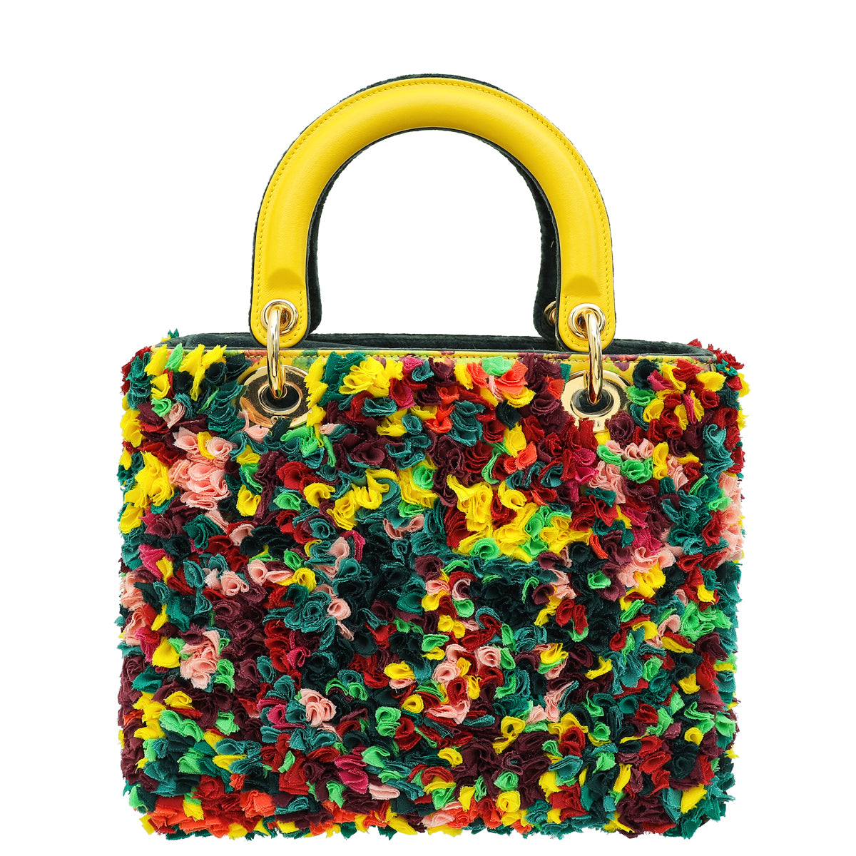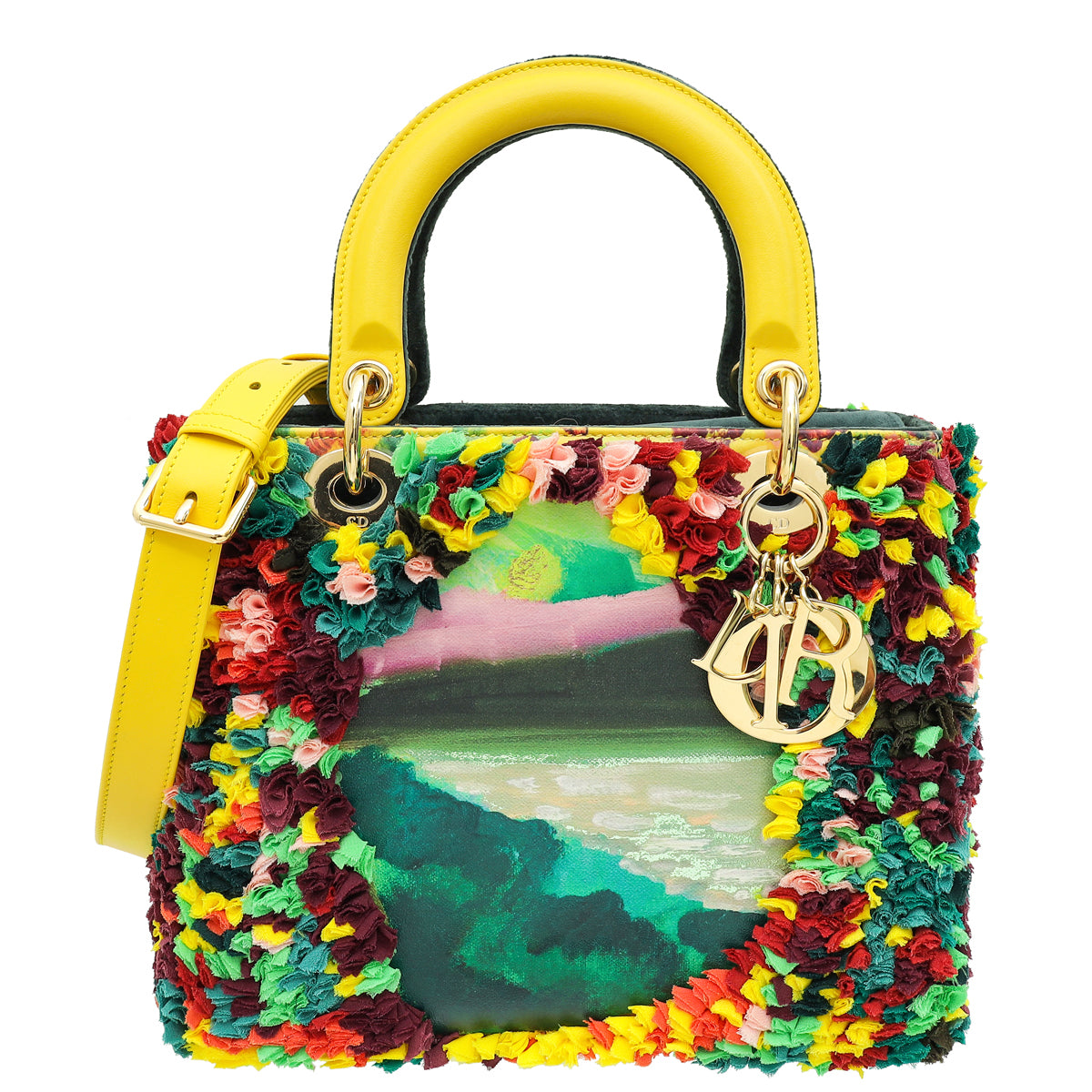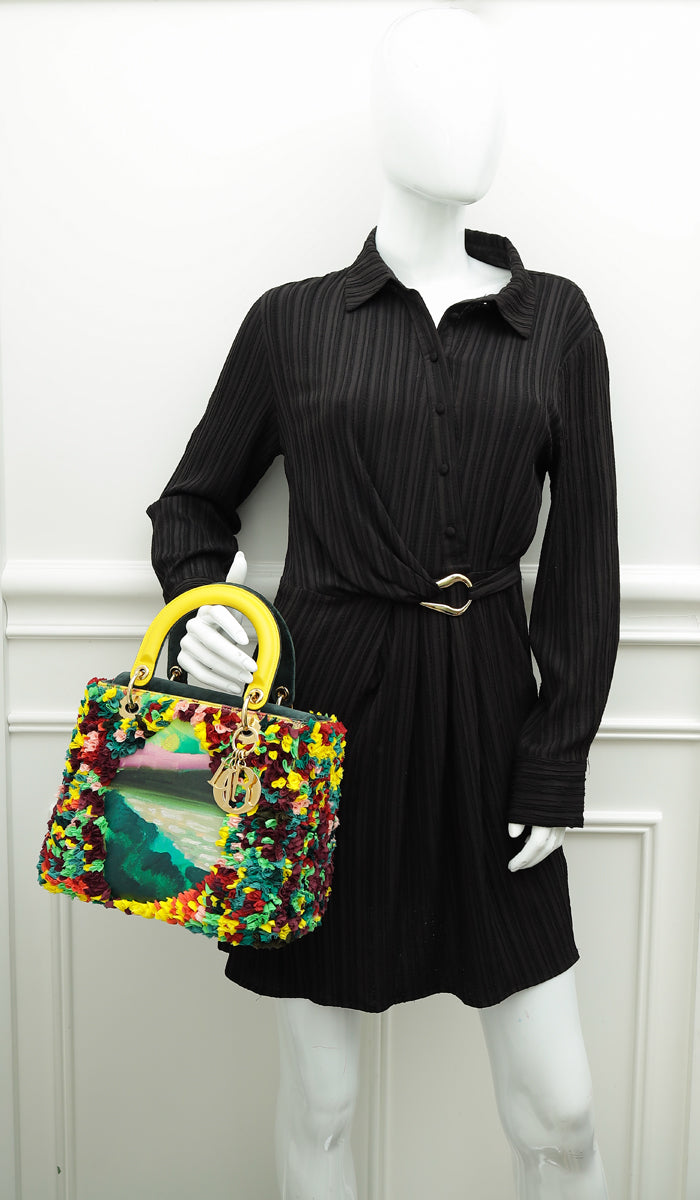 Christian Dior Yellow Multicolor L.E Shara Hughes Lady Dior Medium Bag