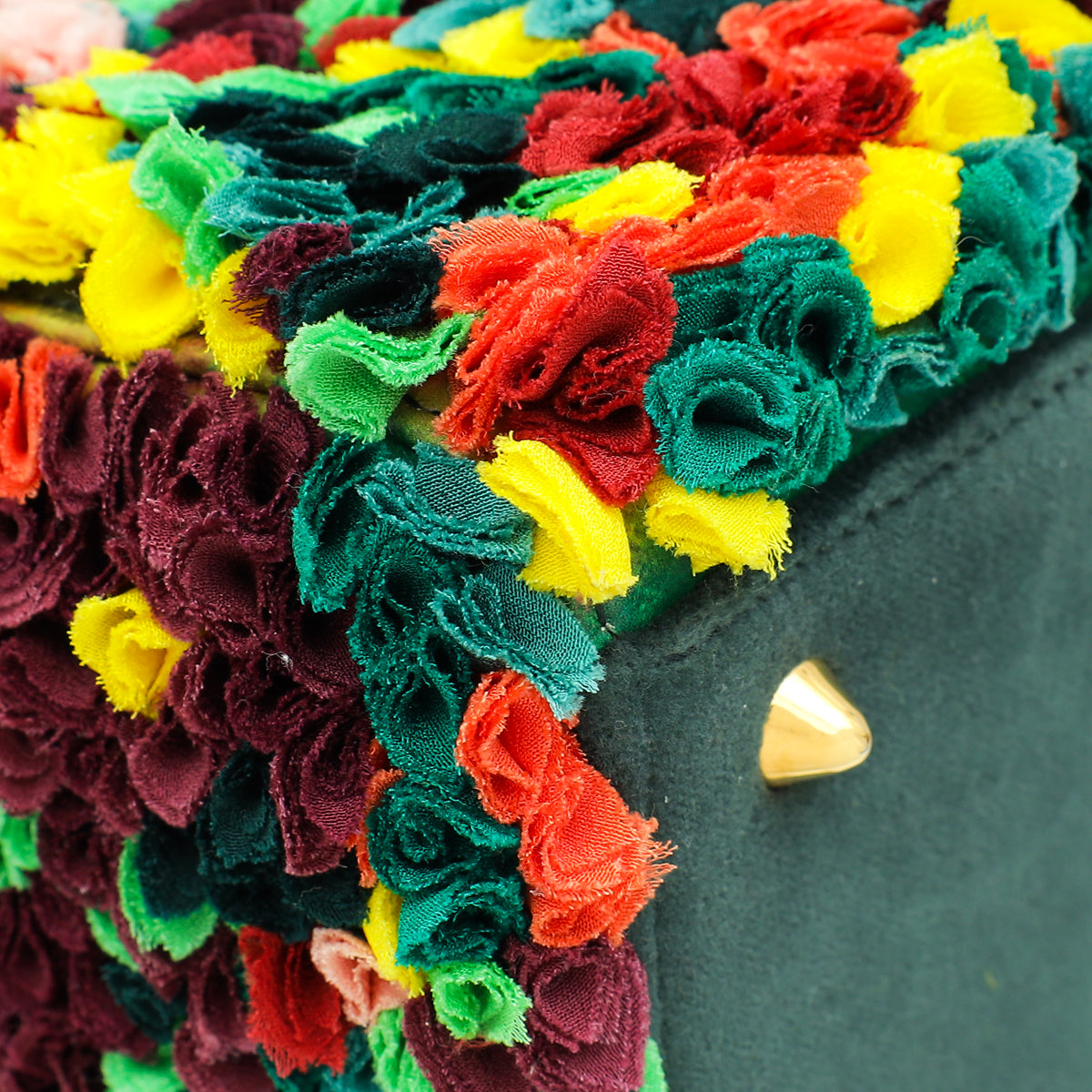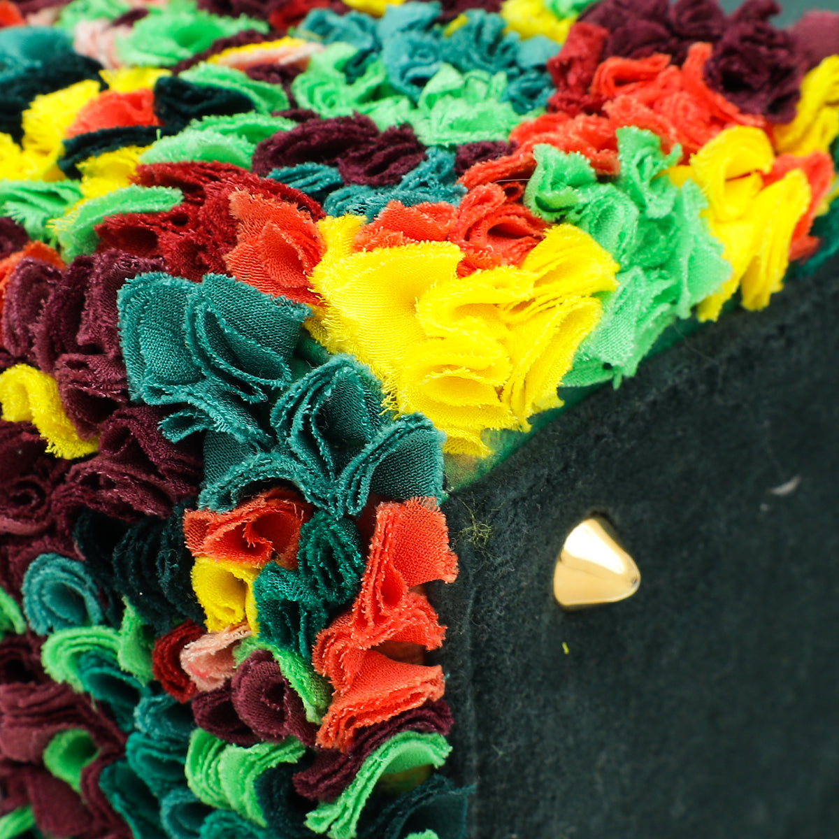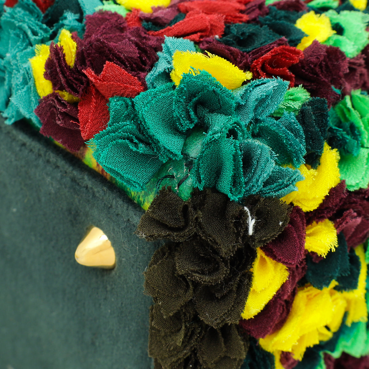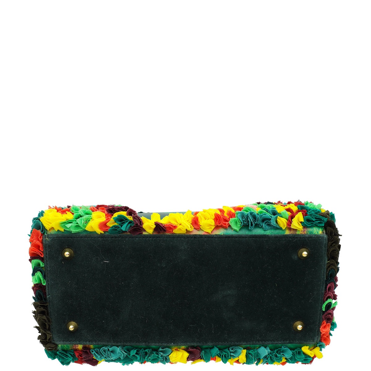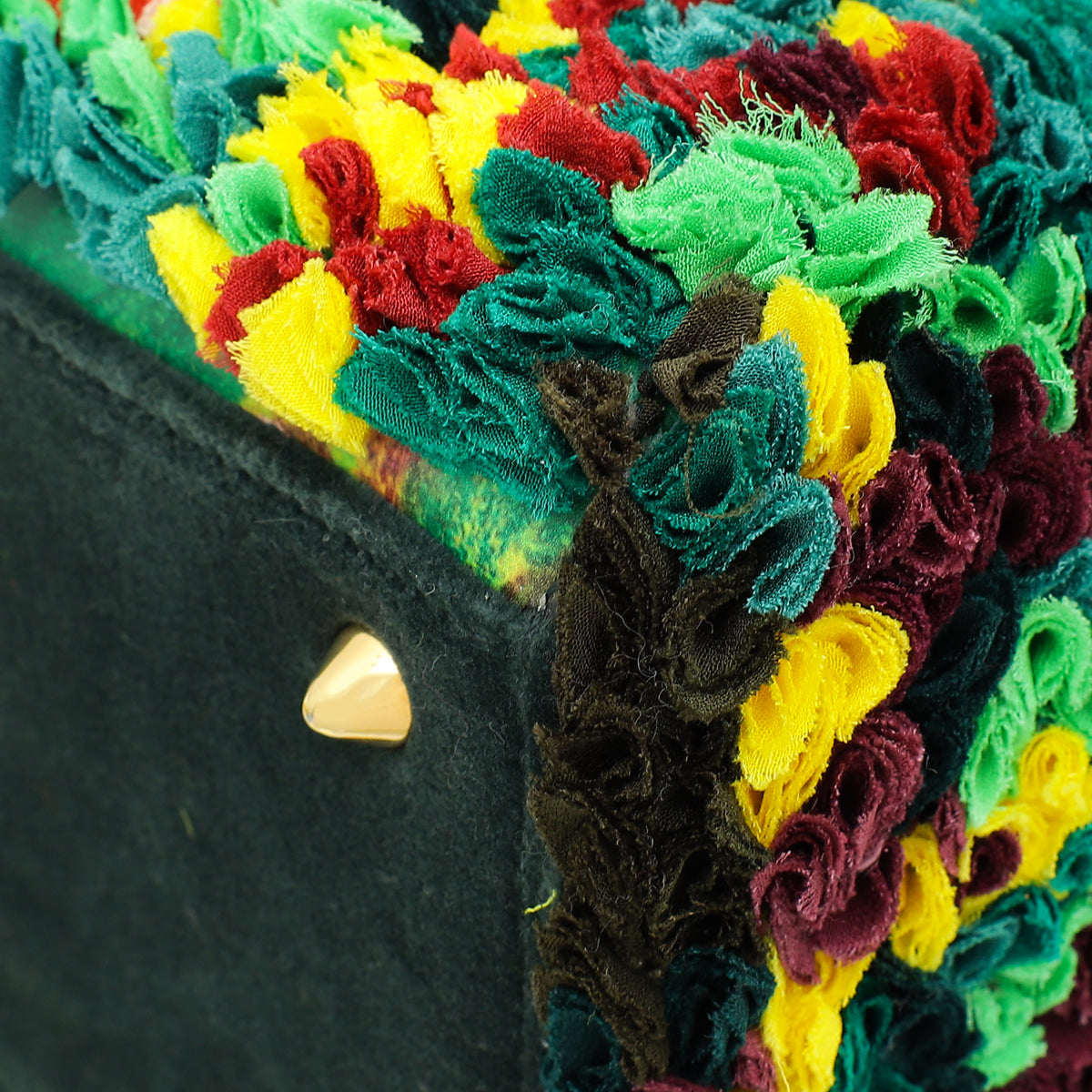 - Material: Yellow Multicolor Fabric and Leather Trim