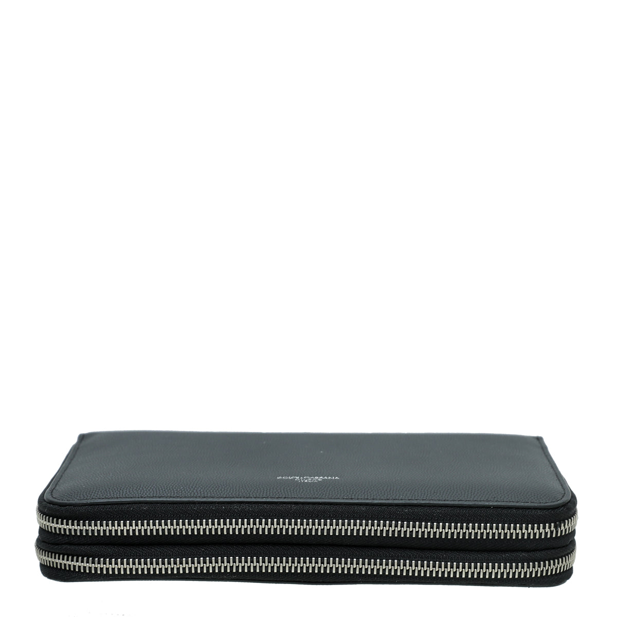 Dolce & Gabbana Black Dauphine Top Handle Double Zip Clutch